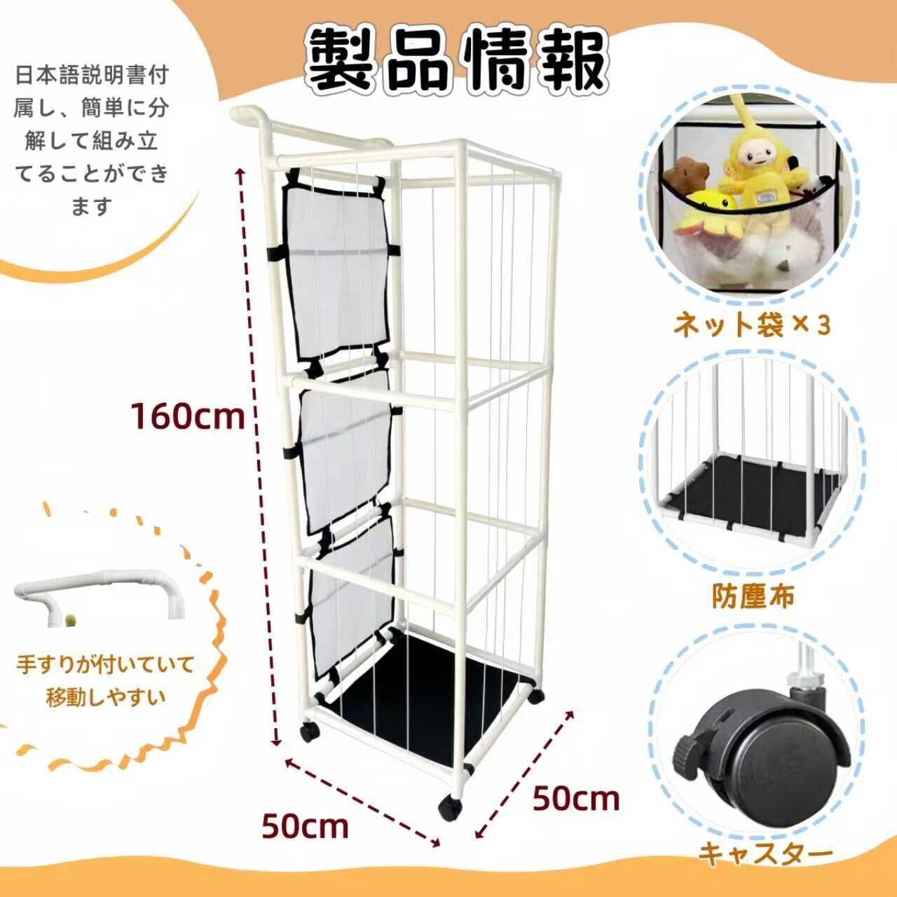 TUIYIDUO ぬいぐるみ 収納 おもちゃ 収納ネット 奥行き50*幅50*高さ160cm 360°回転 キャスター付き 大容量 人形収納かご 陳列棚 DIY 展示ボックス 抱き枕 おもちゃ 整理整頓 プレイルーム 寝室 子供部屋適用 日本語説明書付き