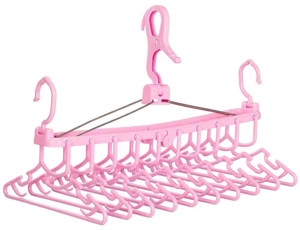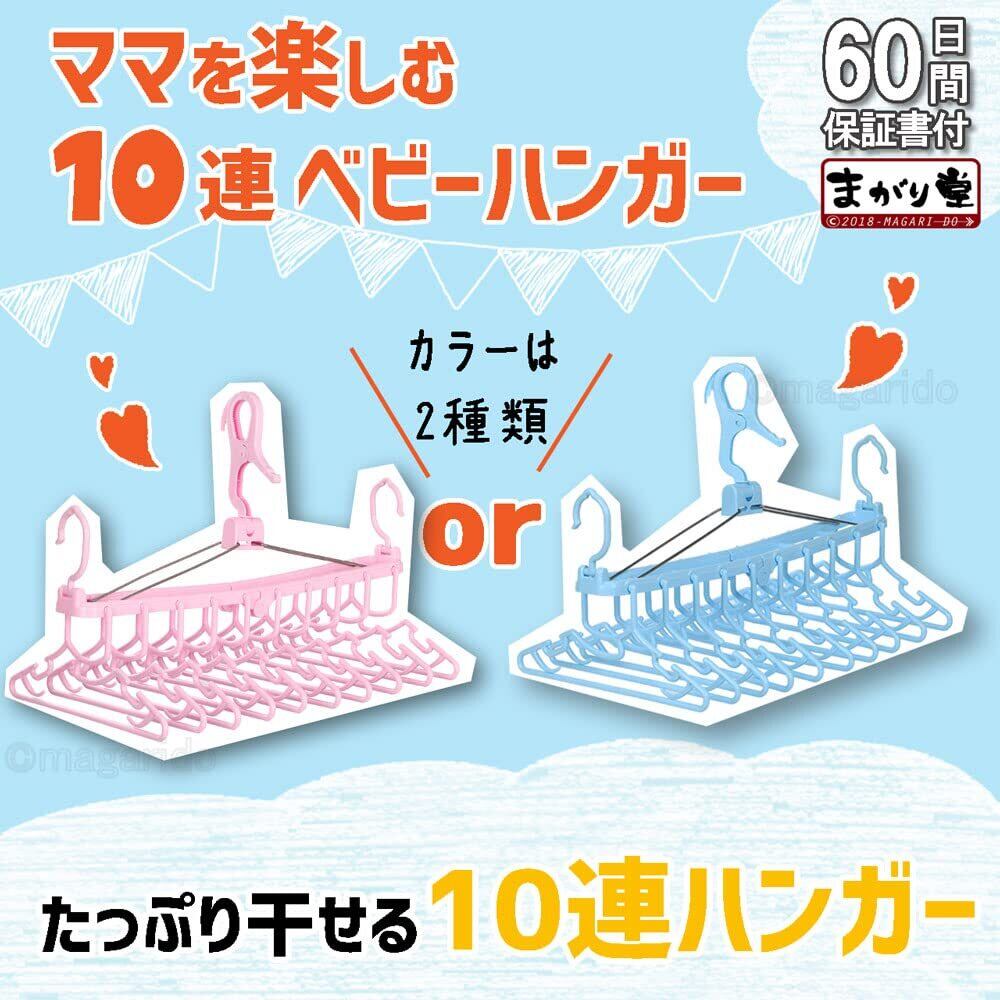 【新着商品】まがり堂 10連 ベビー ハンガー ピンク 桃色 人気 出産祝い 育児 子育て 連結 10本 折りたたみ 折り畳み 回る 洗濯バサミ 赤ちゃん キッズ 子ども 子供 新生児 幼児 はんがー 時短