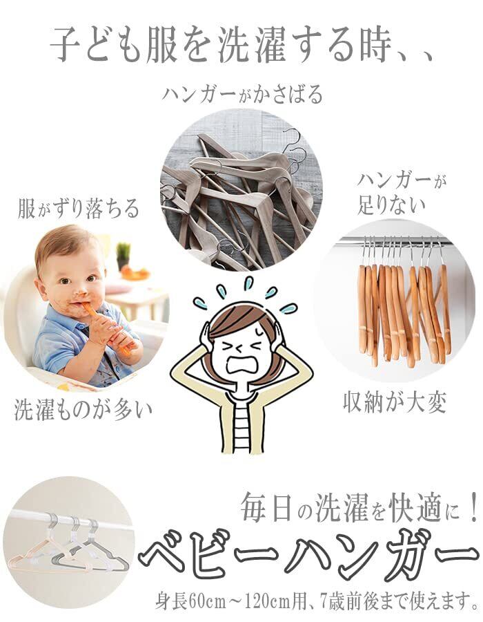 [felicitations] ベビーハンガー 滑らない ハンガー 赤ちゃん 20本 身長60cm~120cm 子供 ハンガー セット (20本, ベージュ)