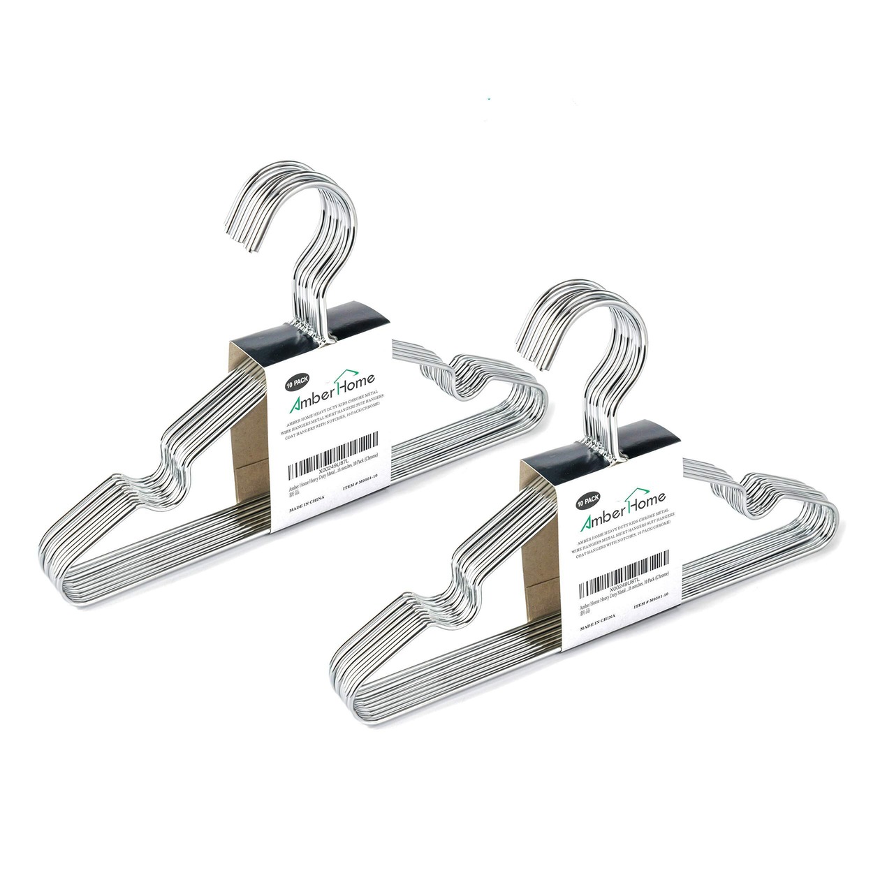 Amber Home ベビーハンガー 20本組 子供用 シルバー 蛍光剤なし メタルハンガー エレガント 衣類金属ハンガー スーツ Tシャツ ジャケット ドレス タオル用 頑丈 耐用 コンパクト 滑り止め 収納 幅30cm