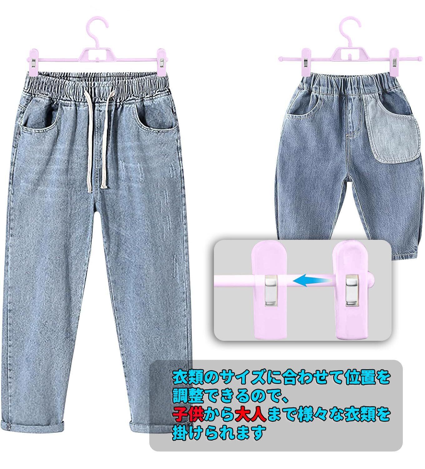 【移動可能】クリップ部分の間隔が左右に23cmから31cmまで移動可能のスカートハンガーです。衣類のサイズに合わせて位置を調整できるので、子供から大人まで様々な衣類を掛けられます。