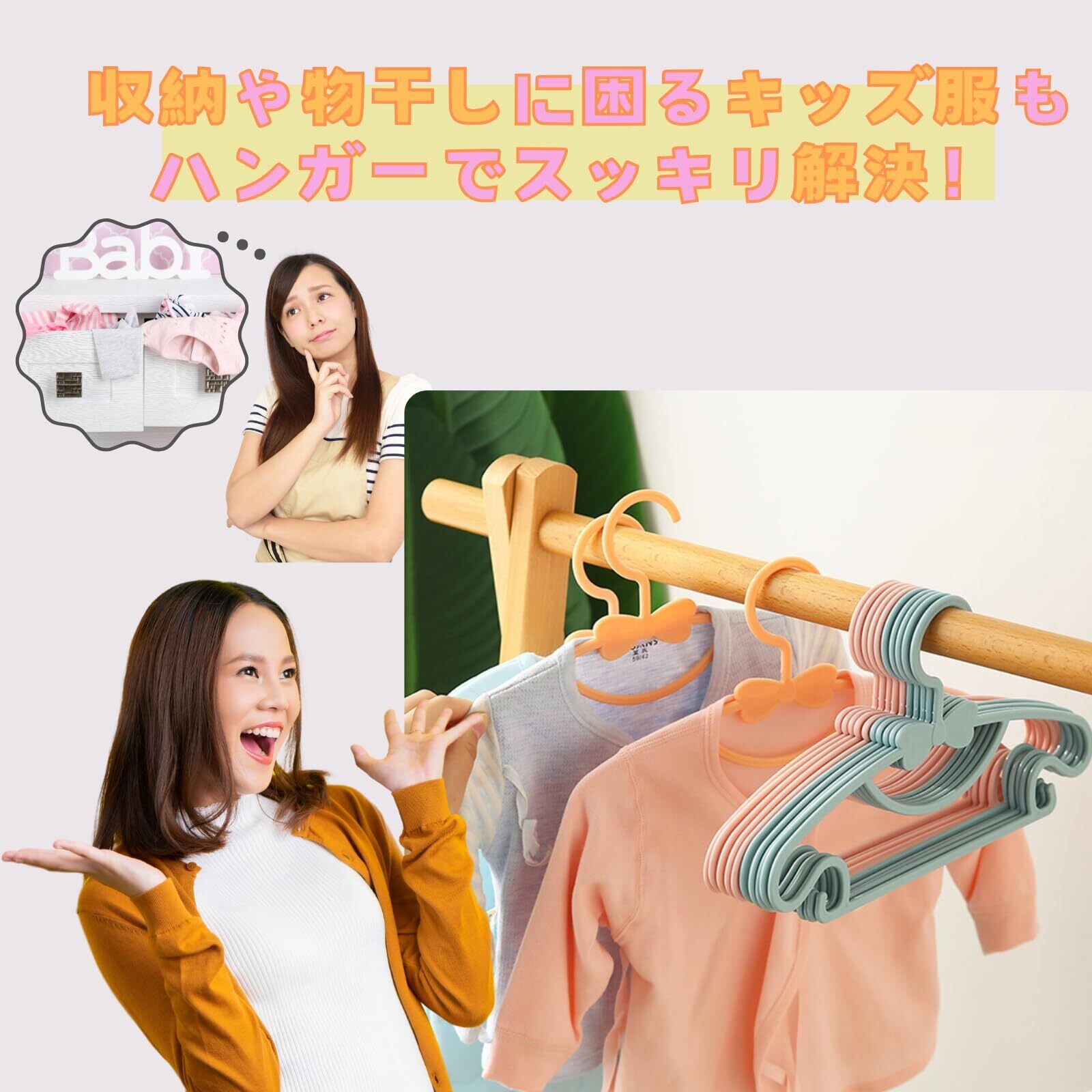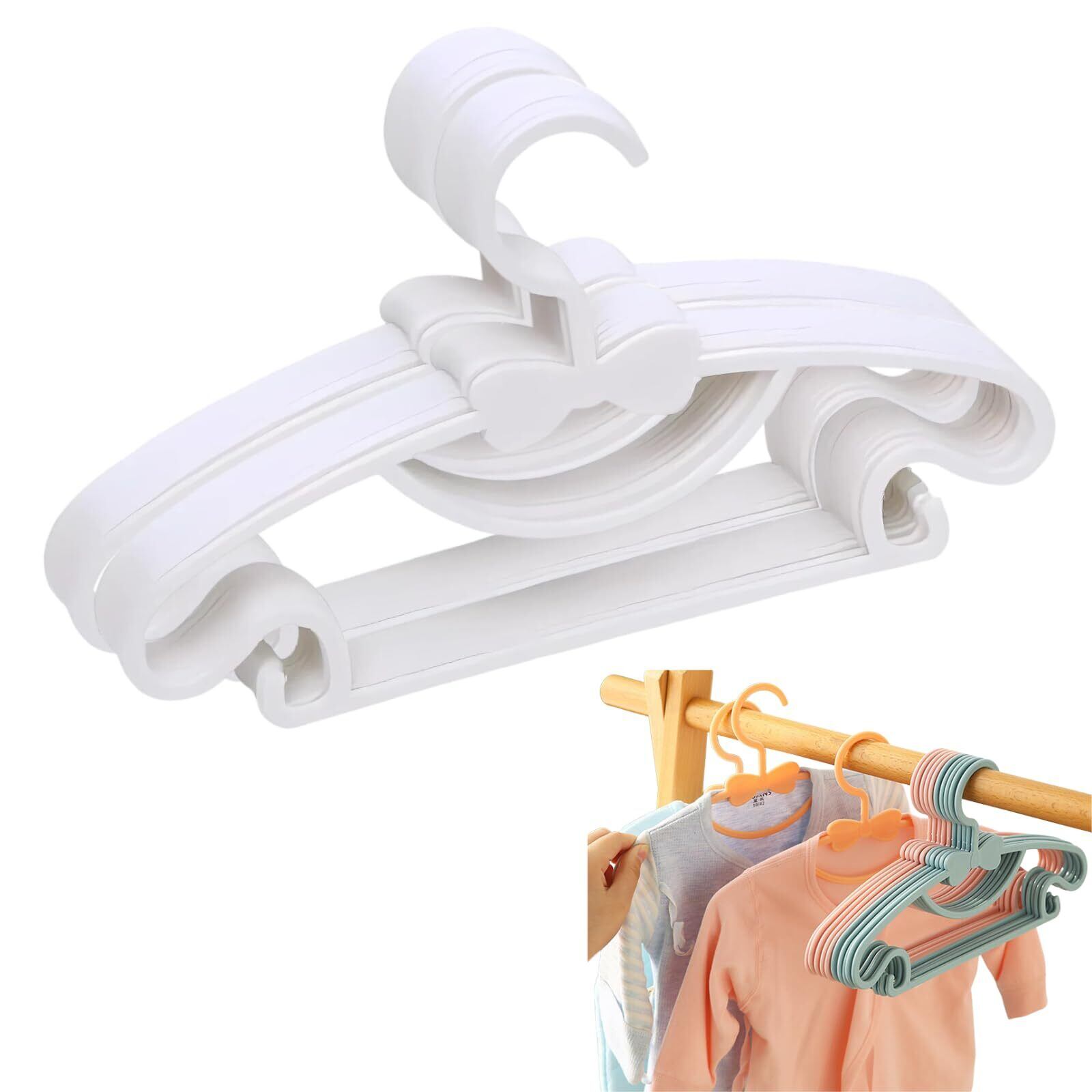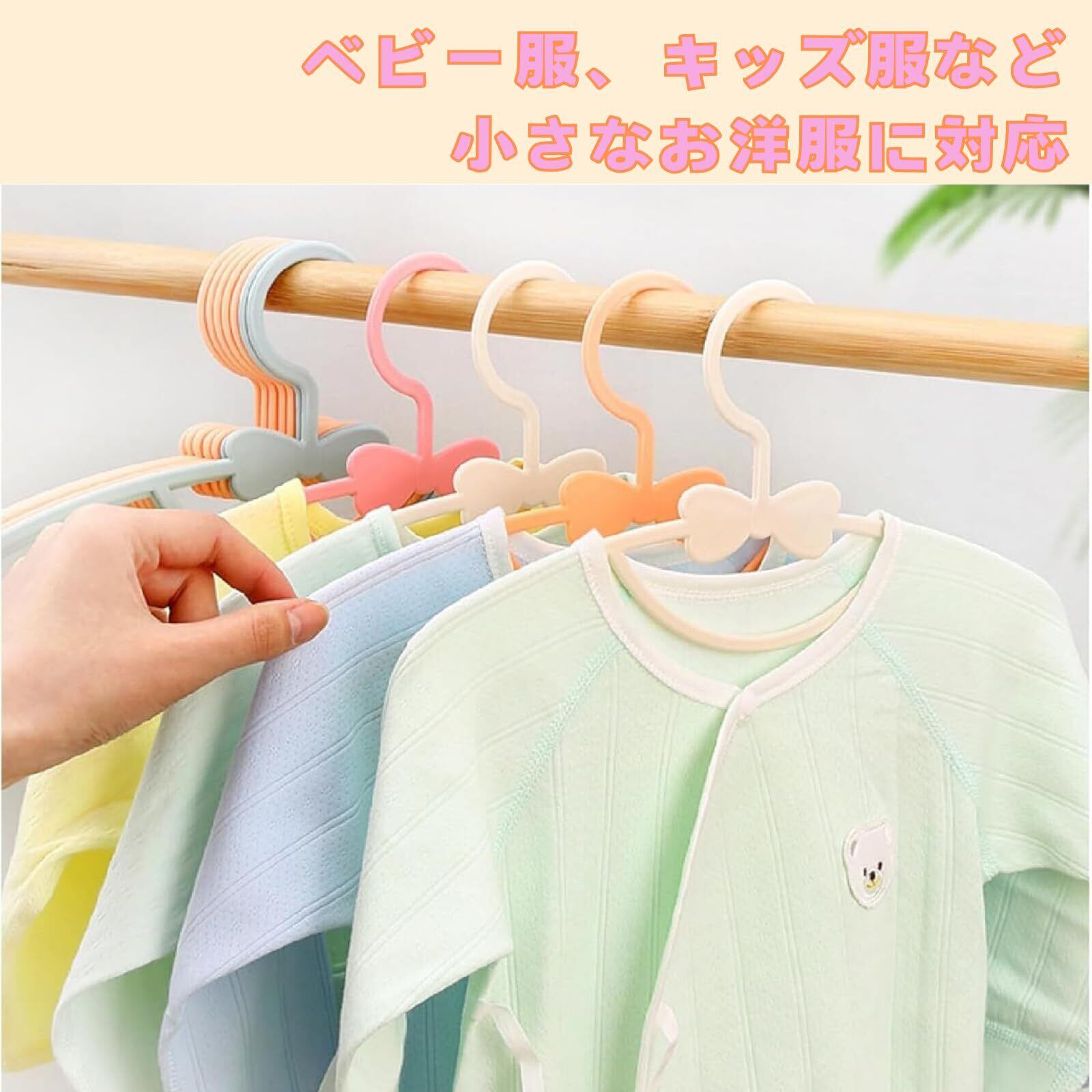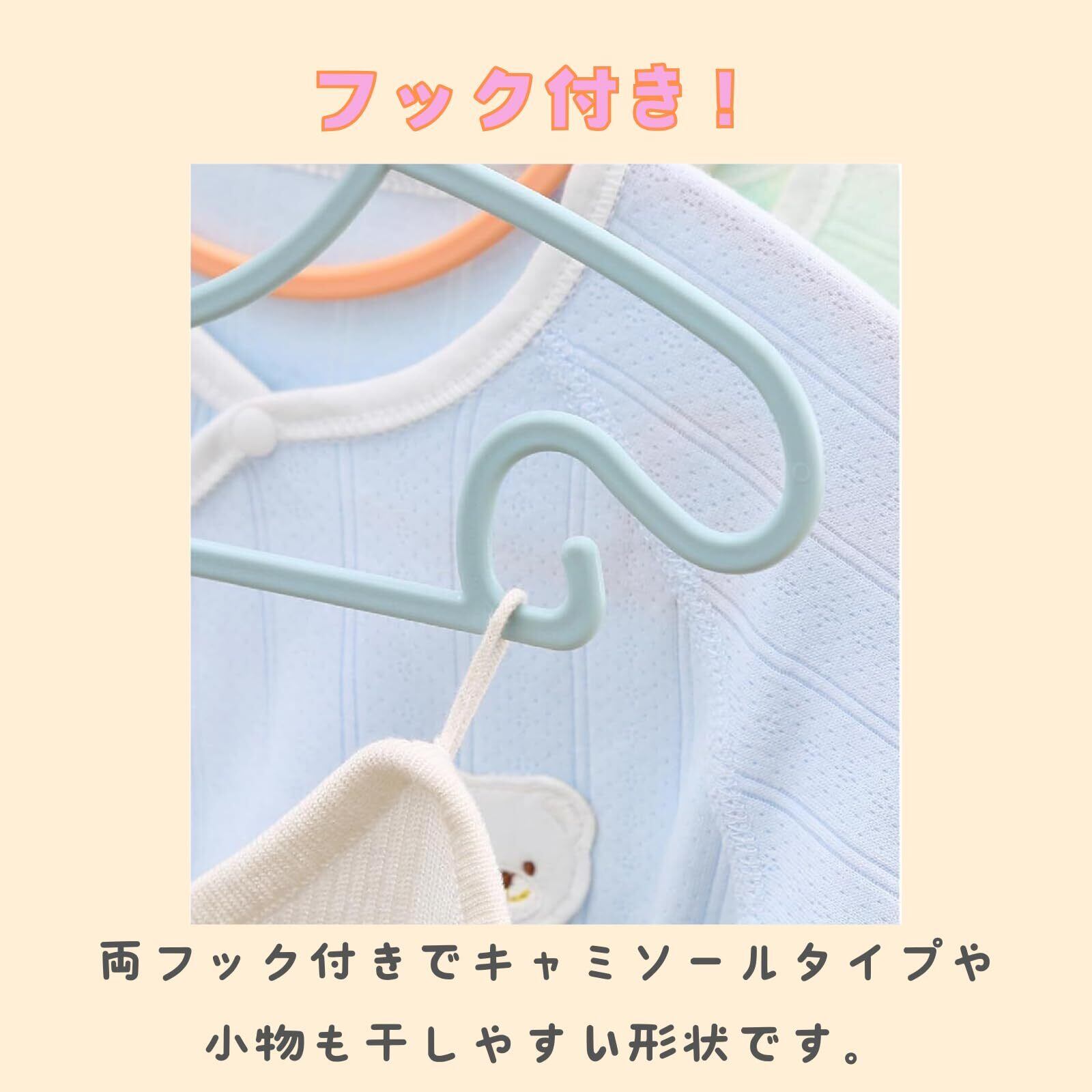 【ベビー服、子供服に対応】大人と子供の服のサイズが違うように、ハンガーのサイズも違います。小型に設計されているので新生児から子供までの衣類にピッタリです。ベビー服、子供服には専用の小さいハンガーをを使うことで、お洋服の伸びや型崩れを防ぎます。薄型に設計されたハンガーは省スペースですっきり収納できます。