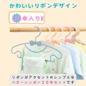 HAPPY SUGAR ベビーハンガー 新生児 クローゼット 洗濯 リボン フック付き 20本セット (ホワイト)