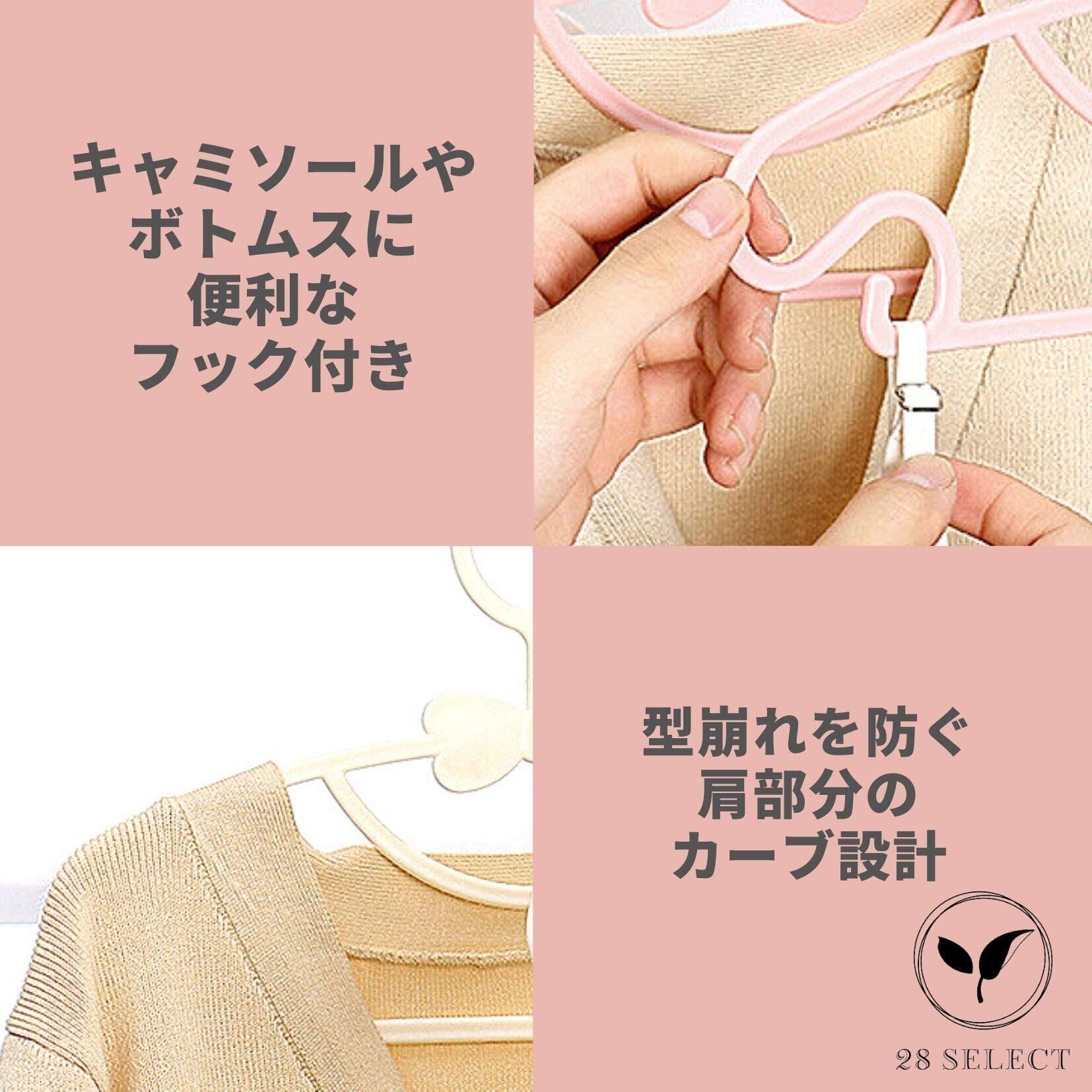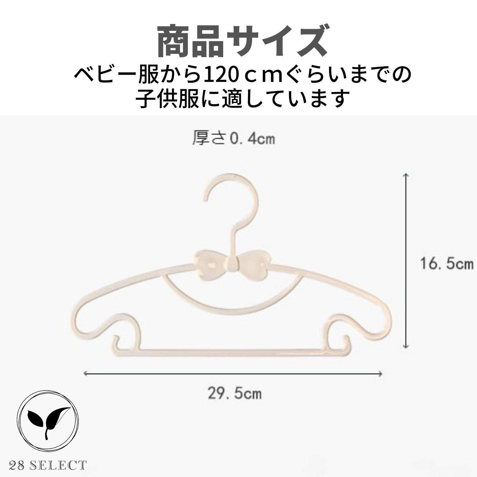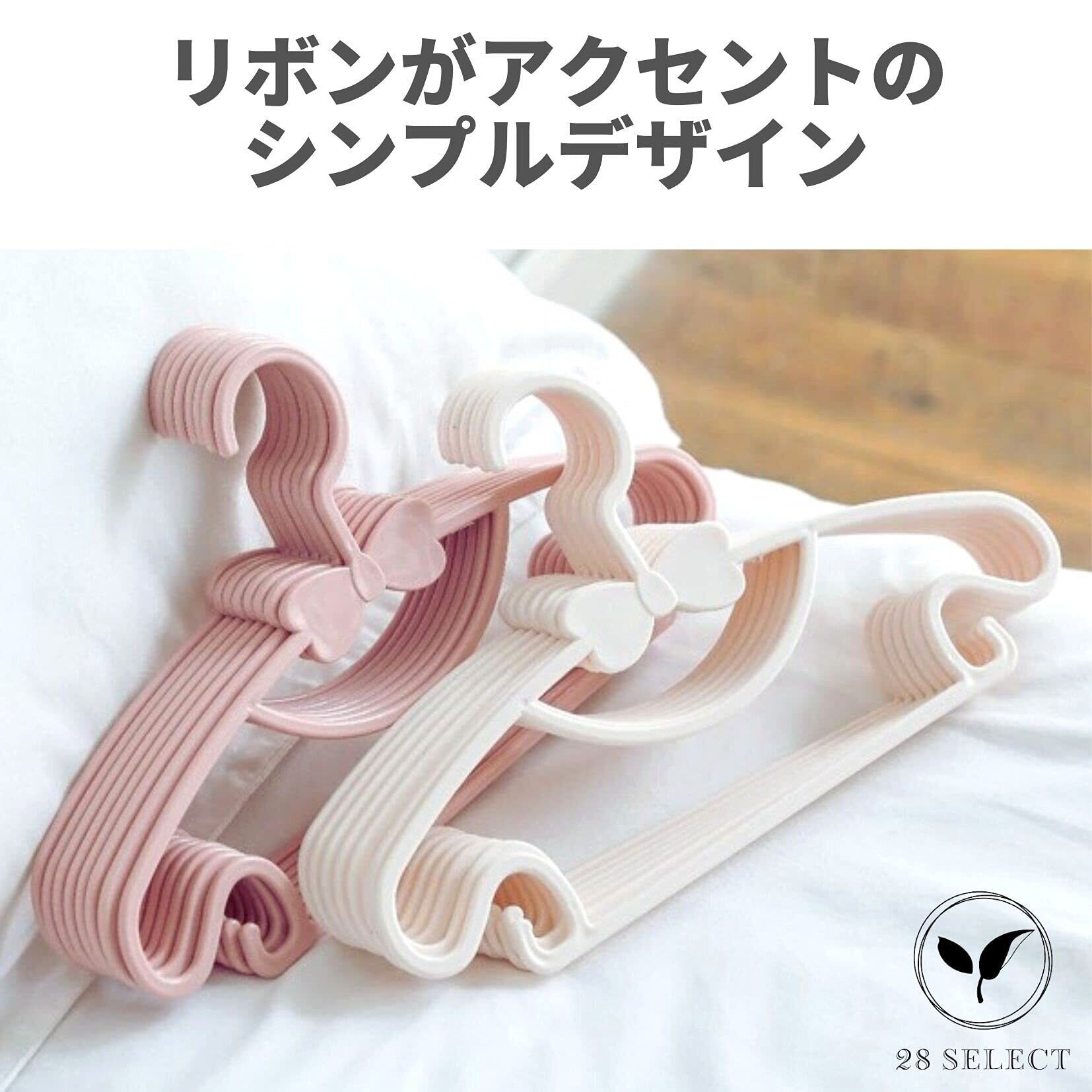 28 SELECT ベビーハンガー 子供用ハンガー プラスチック リボン かわいい 20本セット (オフホワイト)