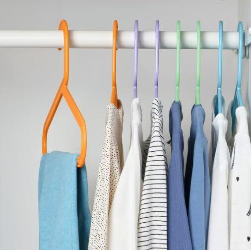 安全で、丈夫で、柔軟性のあるプラスチックを使用したハンガー。リサイクルプラスチックが50%以上含まれているものの、形が崩れることはありません。