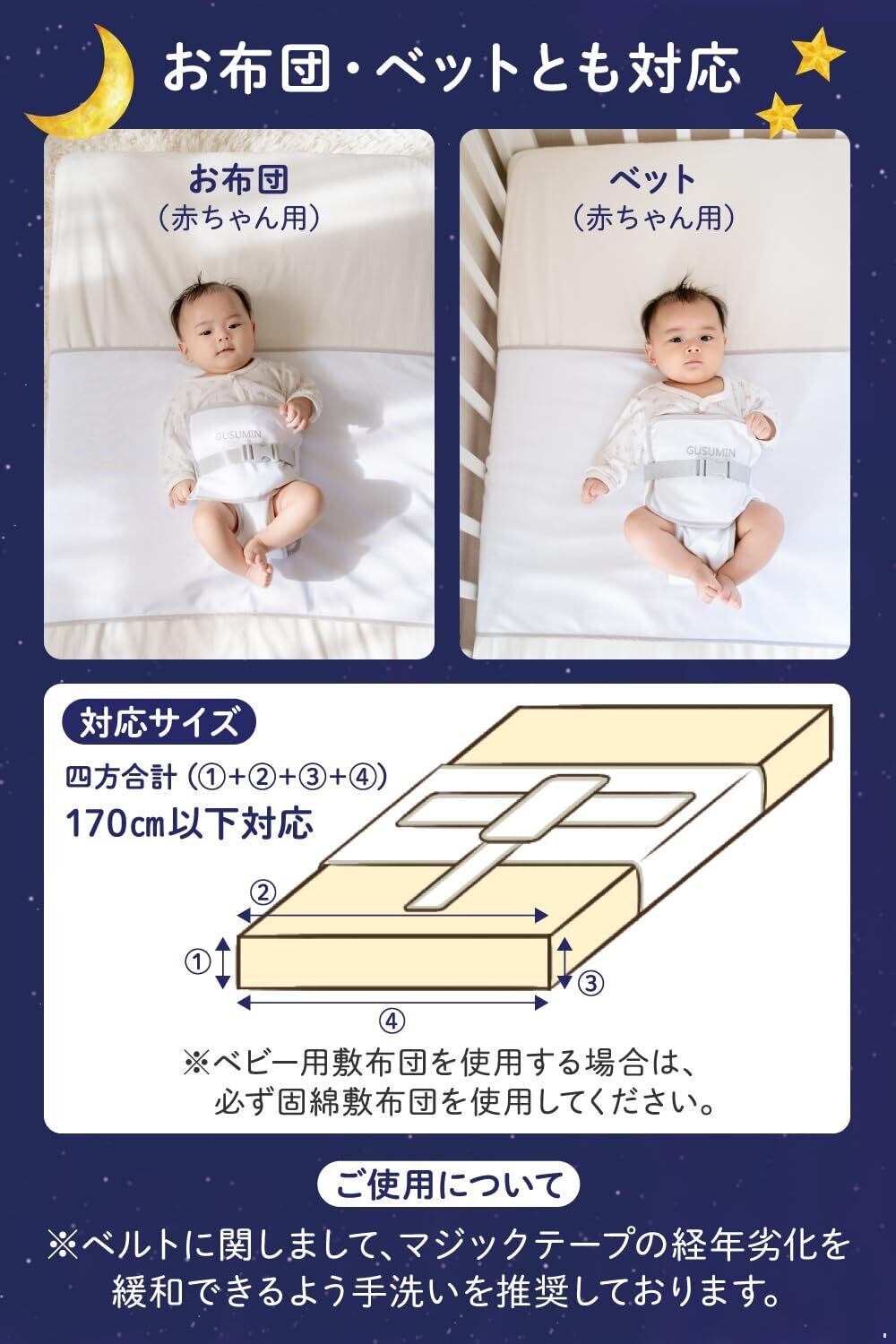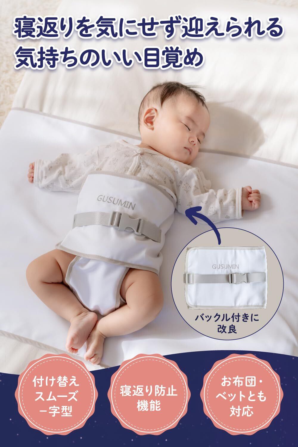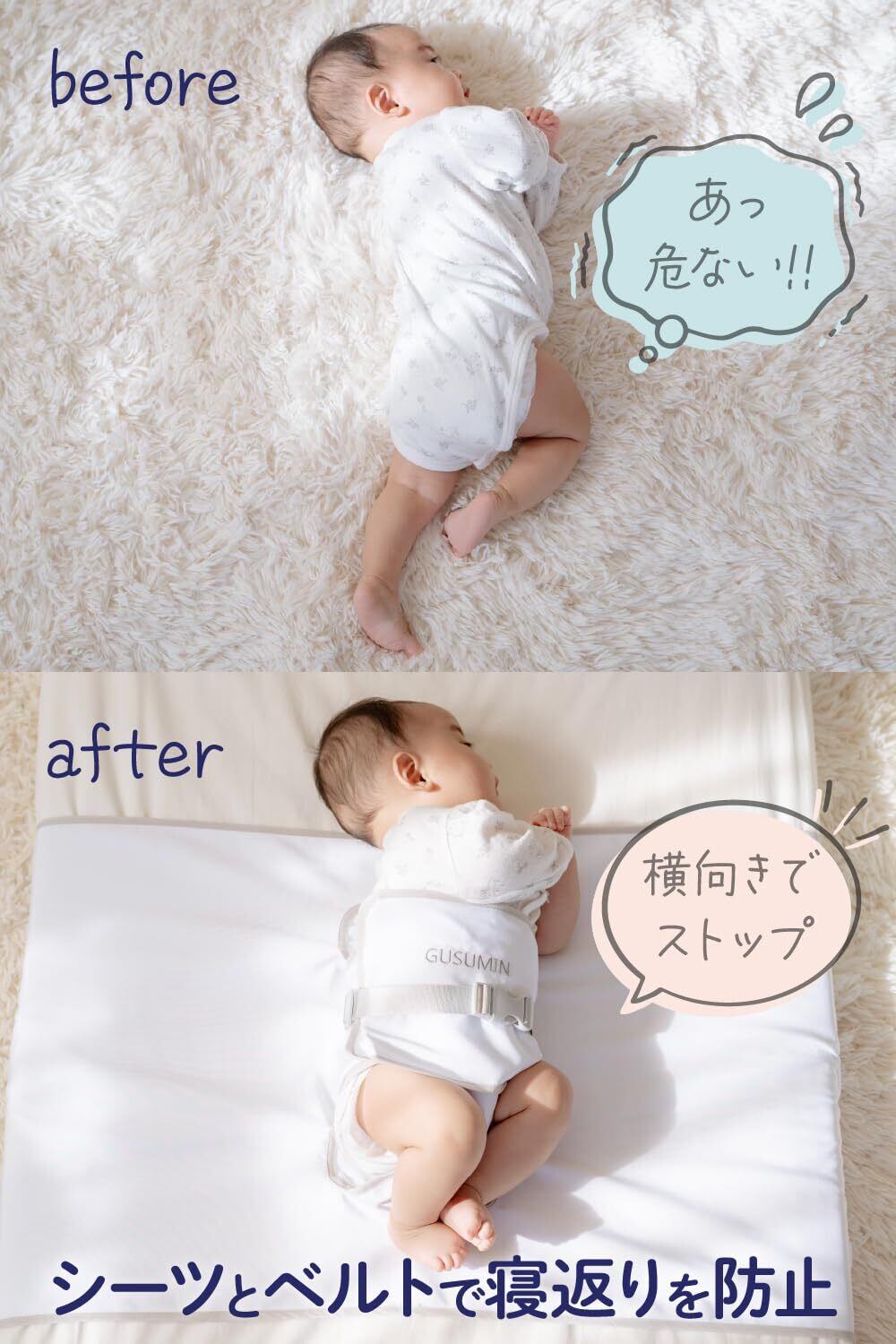 GUSUMIN 寝返り防止 うつ伏せ防止 おくるみ ベルト 赤ちゃん 対策 (セット品)