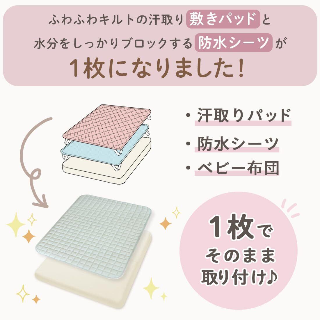 【乾燥機OK!1枚2役の敷パッド】 70cmx120cmのベビー用防水敷きパッドです。汗取りパット&防水シーツの2つの機能が1つに!標準サイズのベビーベッドやお昼寝布団にピッタリのサイズです。さらに乾燥機も対応しているので忙しいママパパにおすすめです。