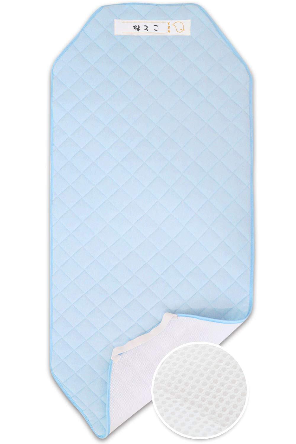 (ケラッタ) コットカバー 保育園 お昼寝 ふんわり中綿キルト 綿100% 裏面メッシュ お名前ネーム付き 四隅ゴム (60x134センチメートル, a. ブルー)
