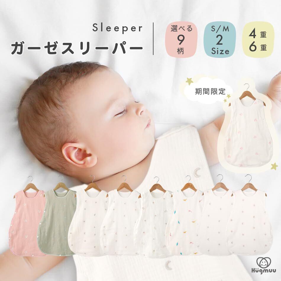 【人気商品】スリーパー 4重ガーゼ 6重ガーゼ コットン ベスト 袖なし 足まですっぽり かわいい 春 夏 秋 冬 1年中 赤ちゃん 新生児 0歳 1歳 2歳 3歳 Hugmuu