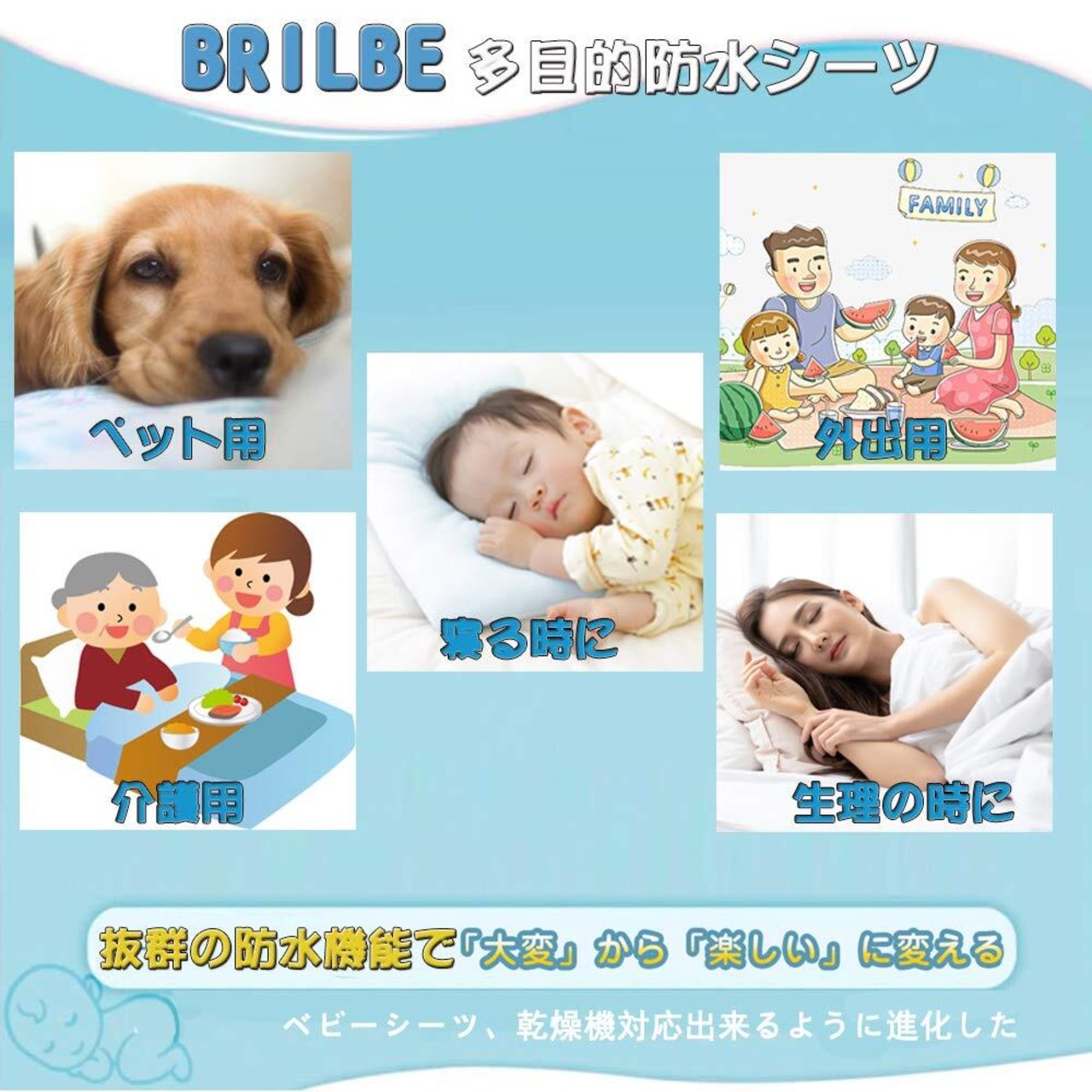 呼吸できる多用途おねしょ防水シーツ。TPU防水素材を採用し、通気性が悪い欠点を徹底的に改善出来た。