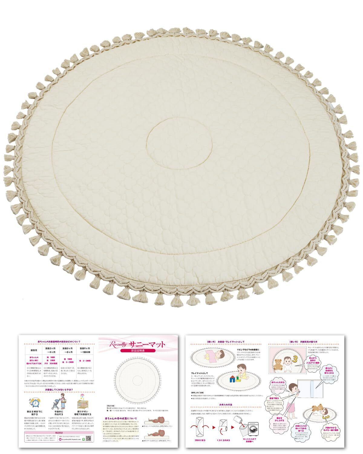 【こだわり】様々なメーカーから サニーマット や イブルマット として” ベビーマット ”が販売されていますが、Rozallyの サニーマット は”こだわり”が一味違います。赤ちゃん用品をメインに取り扱っている10社以上の工場からサンプルを取り寄せ、「快適な寝心地×映える円形マット」を一緒に試行錯誤して頂けた1社に絞って発注を行なっています。