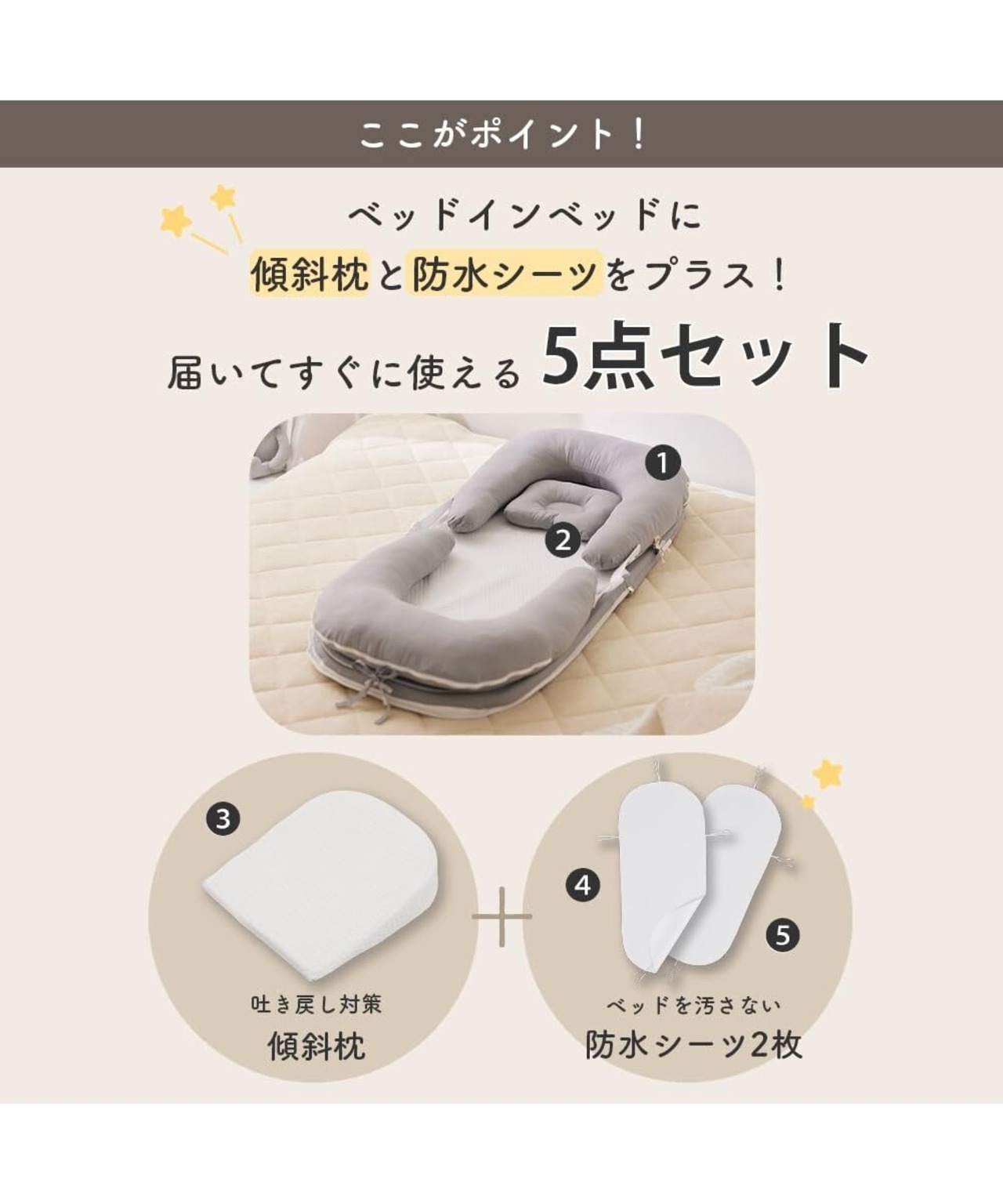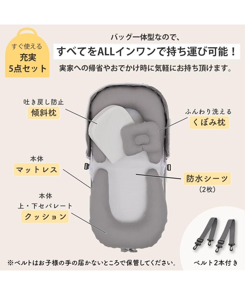 防水シーツと吐き戻し防止枕がセットになっており、赤ちゃんの快適な睡眠をサポートします。