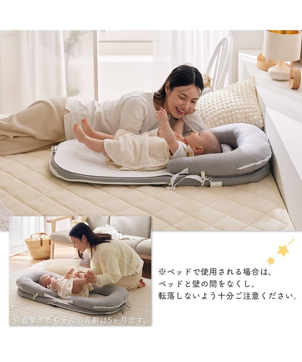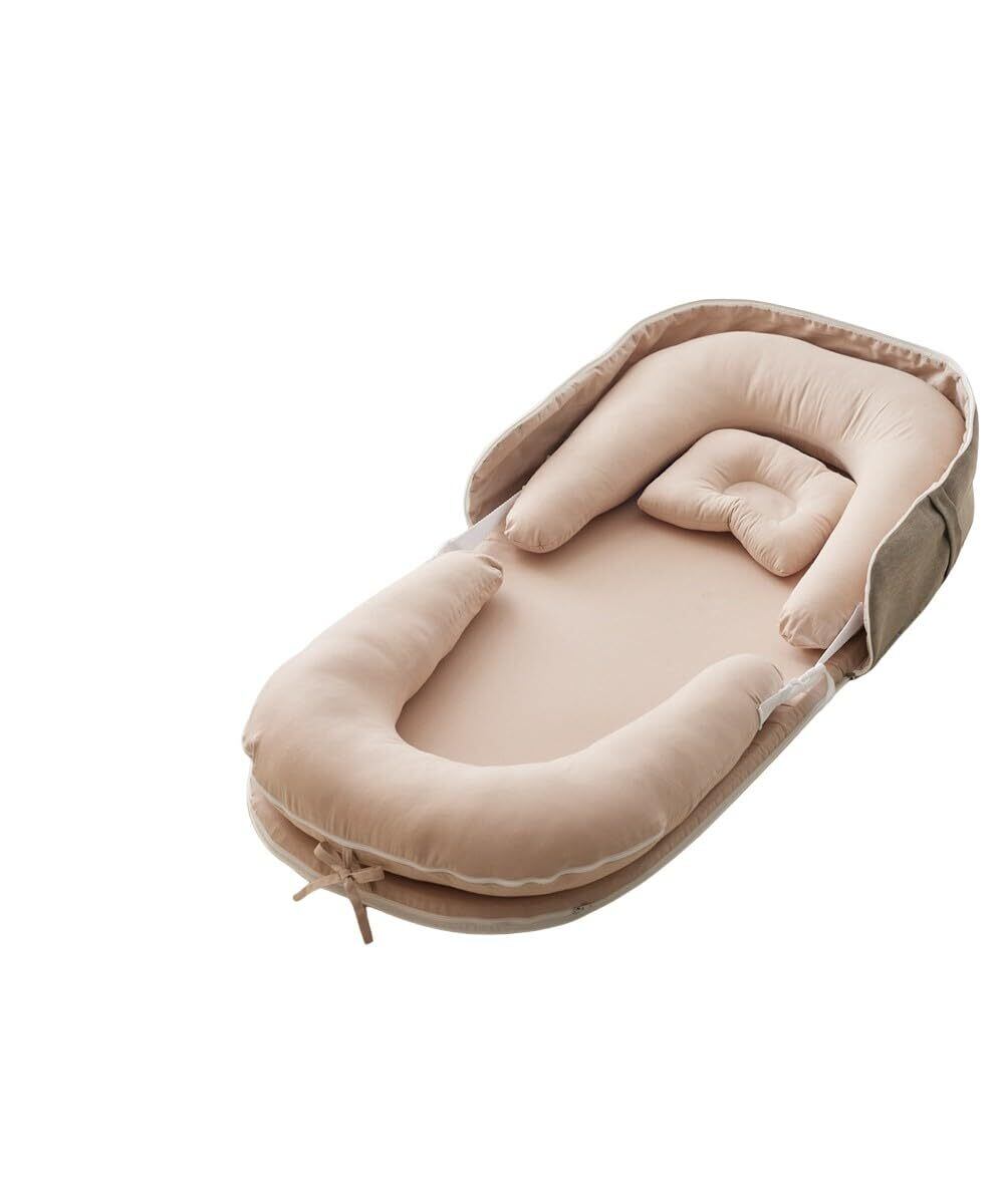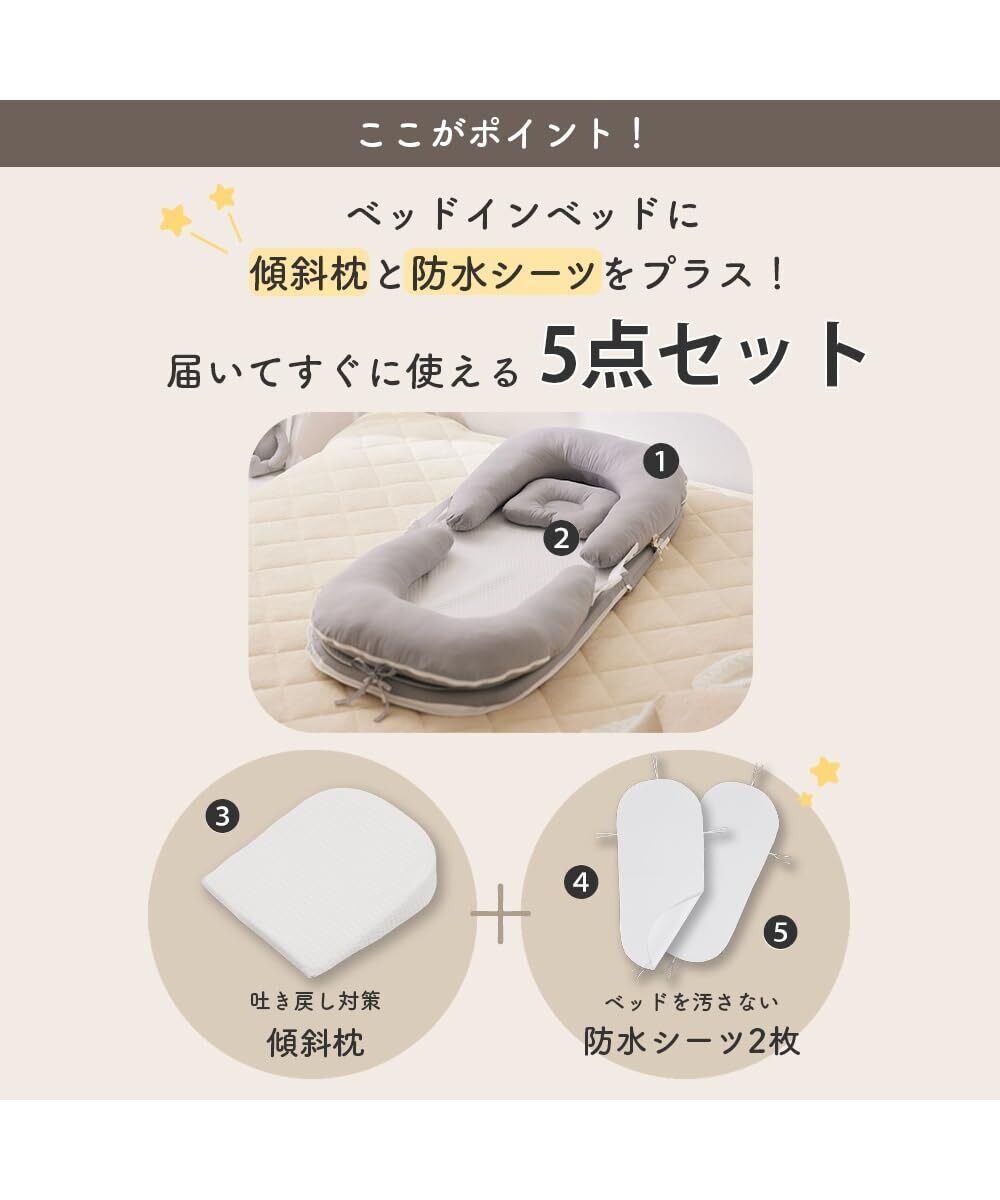 【数量限定】[ニッセン] ベビー布団セット ベッドインベッド5点セット(Coco.Fa) バッグ一体型コンパクトに持ち運び グレージュ ベッドインベッド5点セット