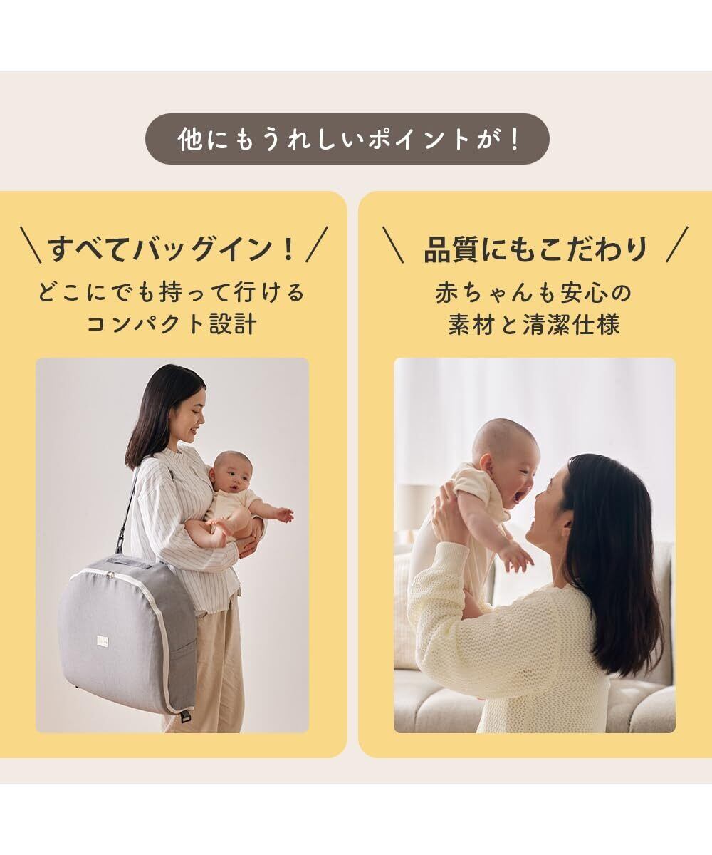 バッグ一体型でコンパクトに持ち運び可能で、寝室、リビング、お出かけ先など、いつでもどこでも目の届く場所に設置できます。