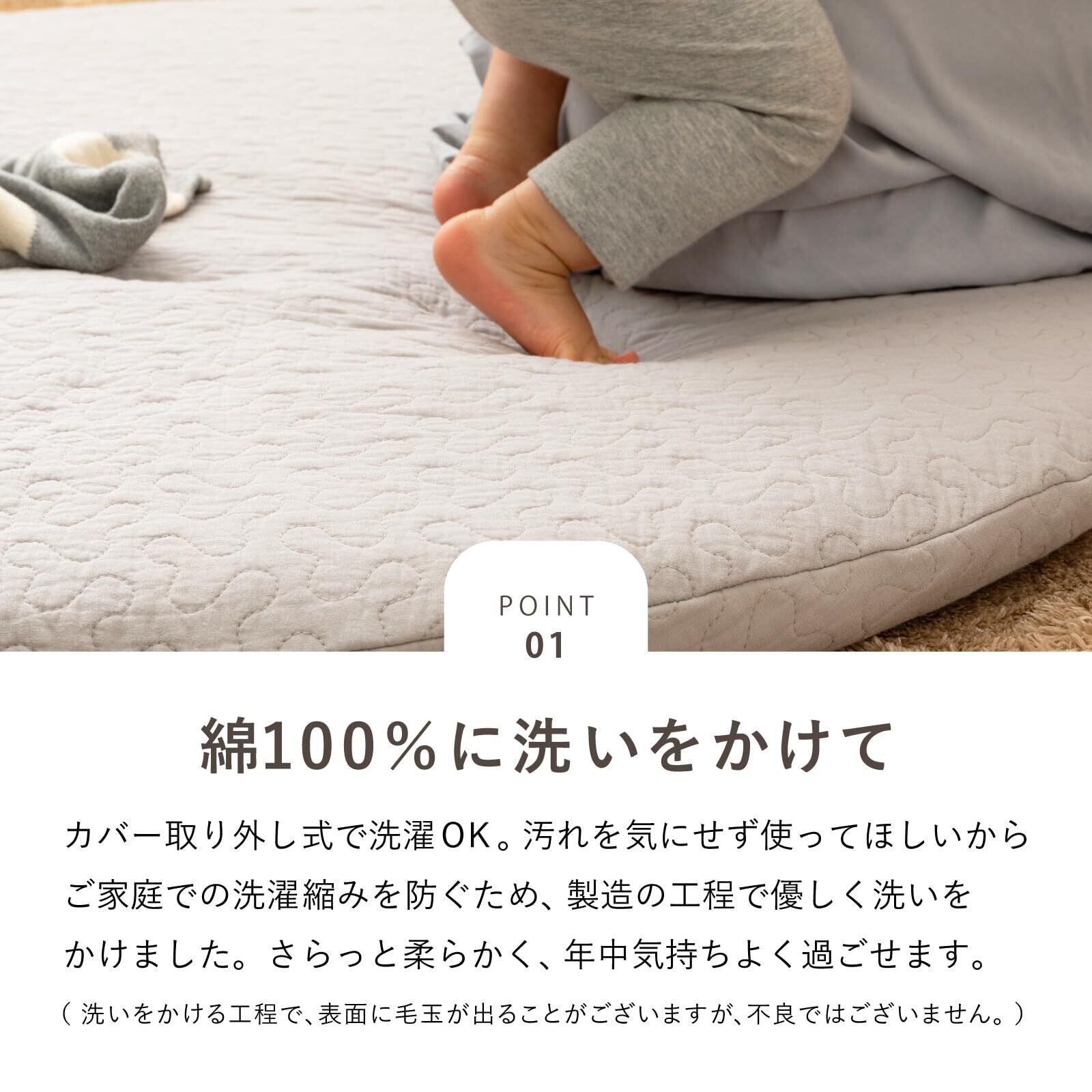 カバーは取り外して洗濯機で丸洗いできるので、いつでも清潔にお使いいただけます。出産祝いとしてもおすすめです。
