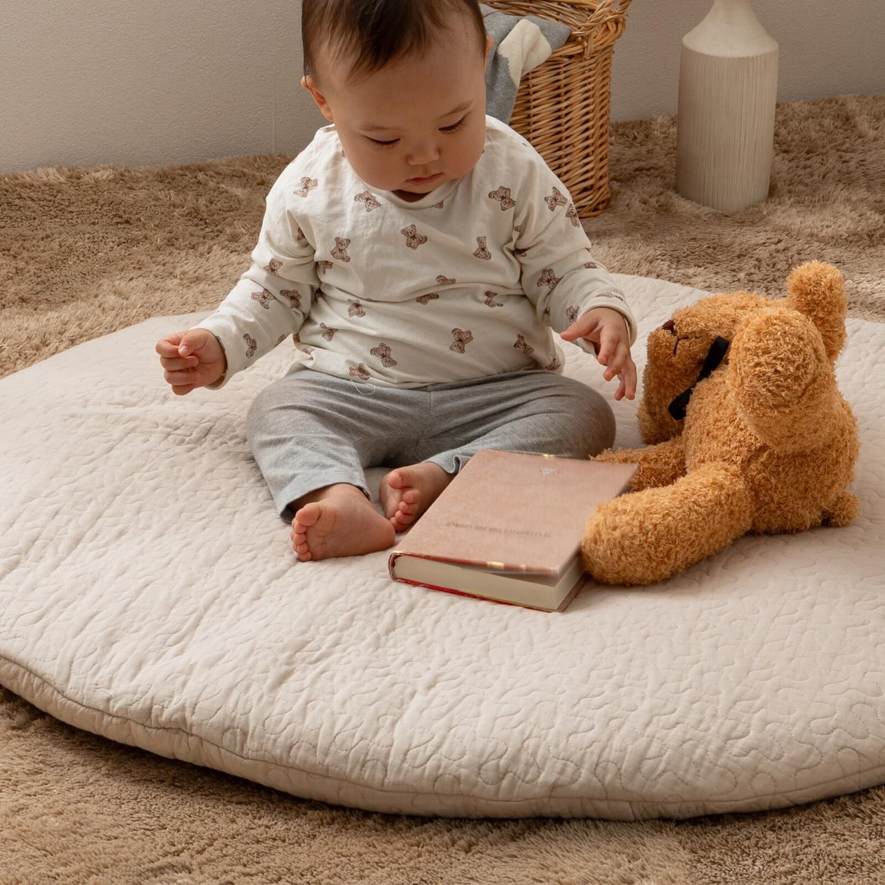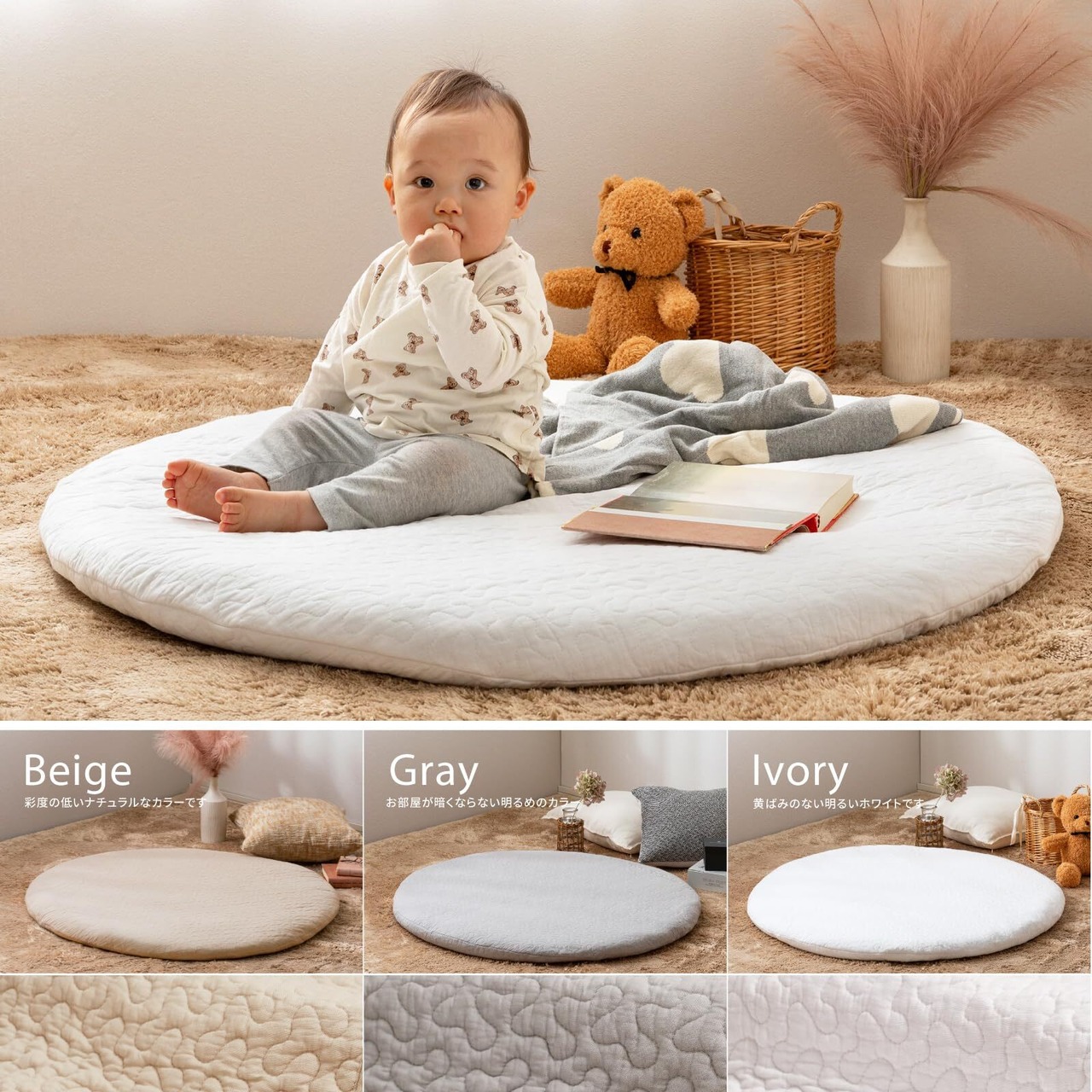 【数量限定】萩原 サニーマット ベビークッション デコール ベージュ 直径約100cm 綿100% イブル 円形 乳児 お昼寝 月齢フォト