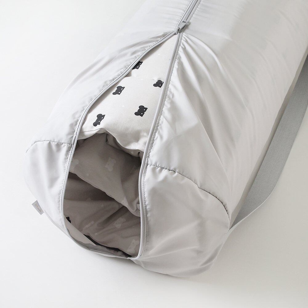 滑りやすい生地でお布団も入れやすく、筒型なのでスマートに持ち運びいただけます。
