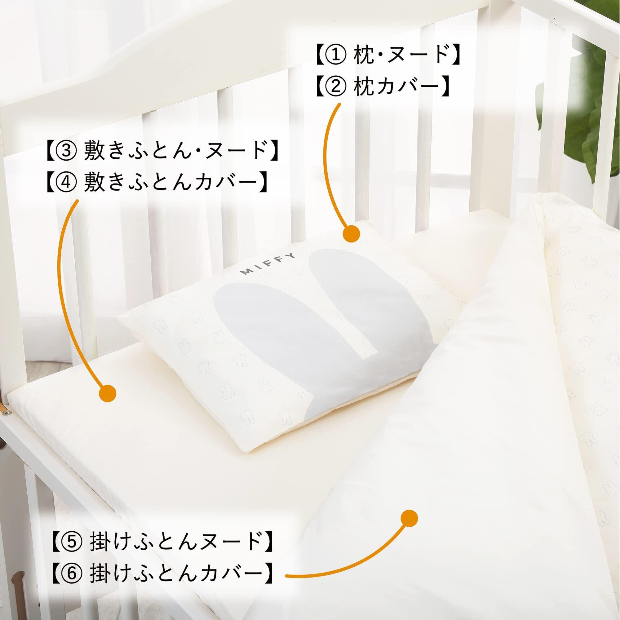 nishikawa 【 西川 】 ベビー組布団 6点セット 洗って使える オーガニック ミッフィー おかお柄 日本製 ベージュ WF52302001 本体:95X120cm, 70X120cm, 37X27cm