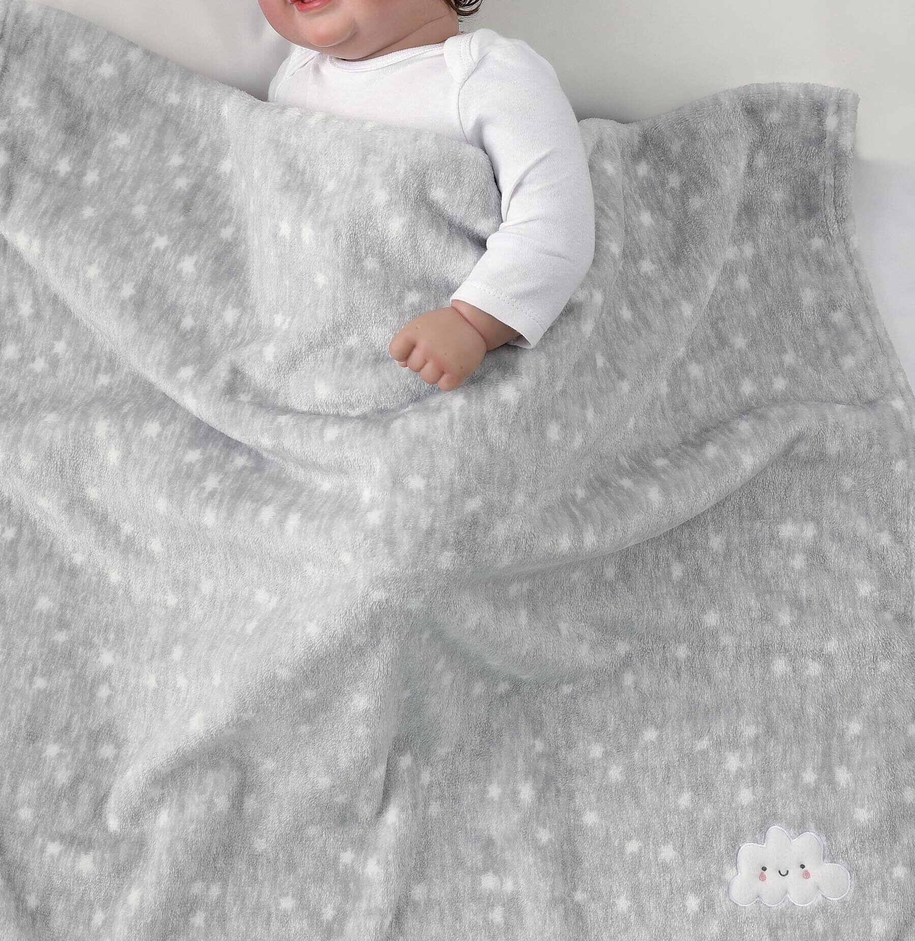 CREVENT 76 x 102 cm 可愛い快適で軽くて暖かいベビー毛布幼児ベビーベッドベビーカーベビーシャワー誕生日新生児プレゼント-灰色の雲