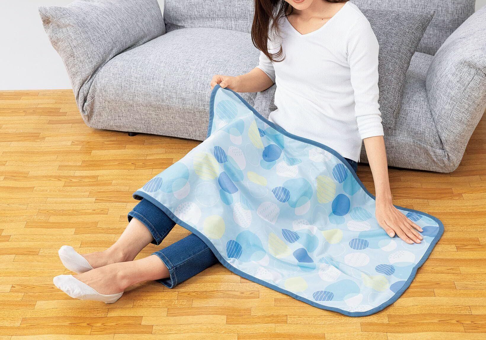 触るとひんやり接触冷感生地使用。夏用 ひざ掛け。掛けても敷いてもOK。ちょっとしたお昼寝や子供用に活躍するコンパクトサイズ。