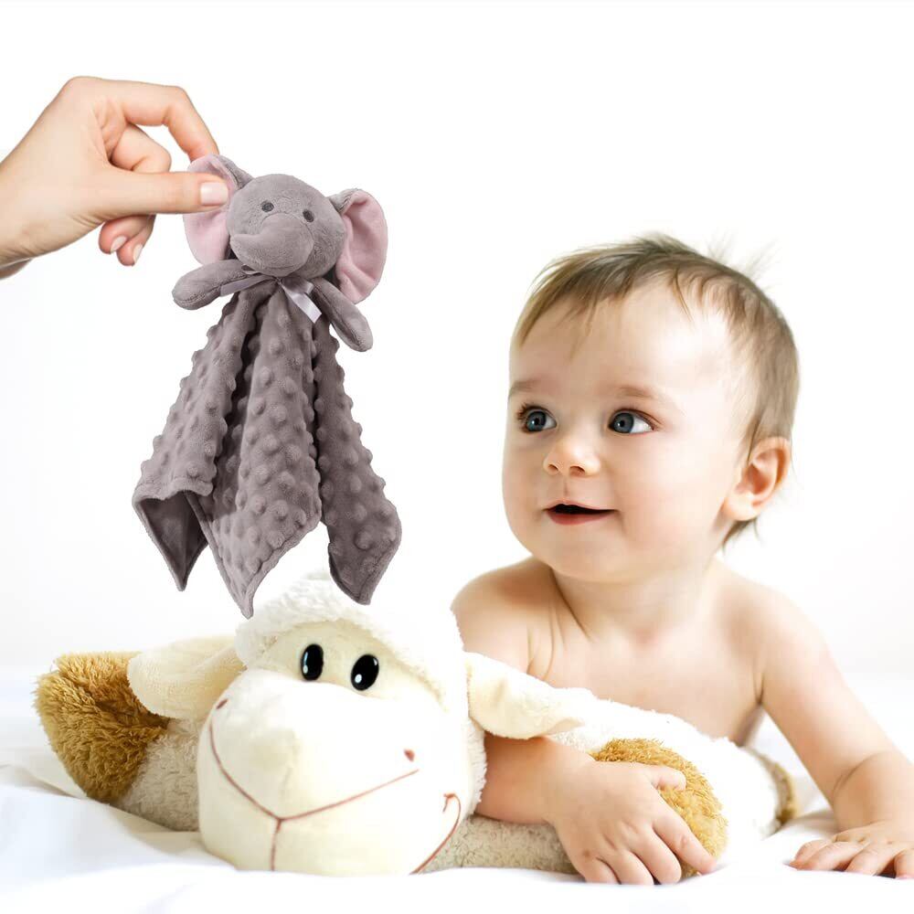 CREVENT 柔らかで快適なベビー毛布、ベビーガール男の子新生児用(グレーの小象、ブランケット35 x 35 cm)Minky Dot Front + Sherpa Backing Grey Elephant