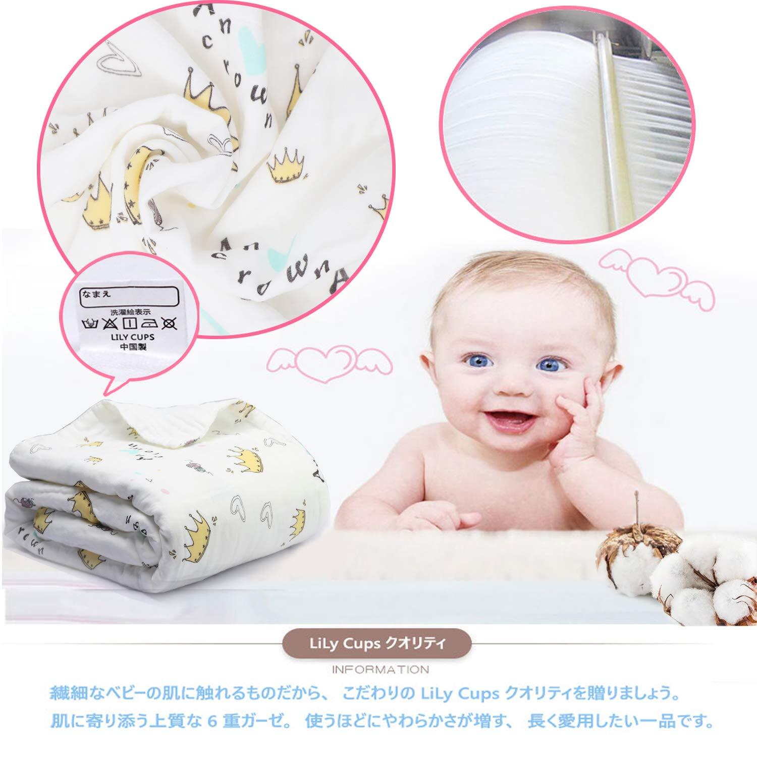 【新着商品】[LILY CUPS] ガーゼタオル ベビー バスタオル ガーゼケット 6層 綿100% (2枚組, 110*110cm)