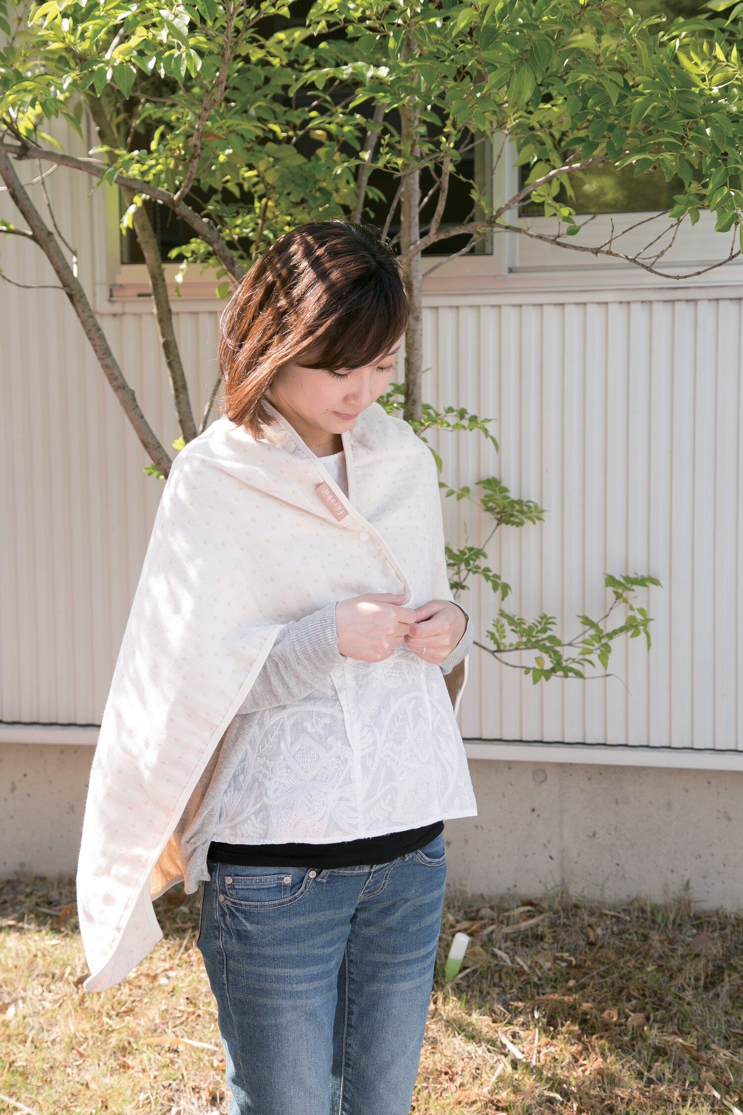 授乳ケープ/ポンチョ時に着脱が簡単なスナップボタン付き。