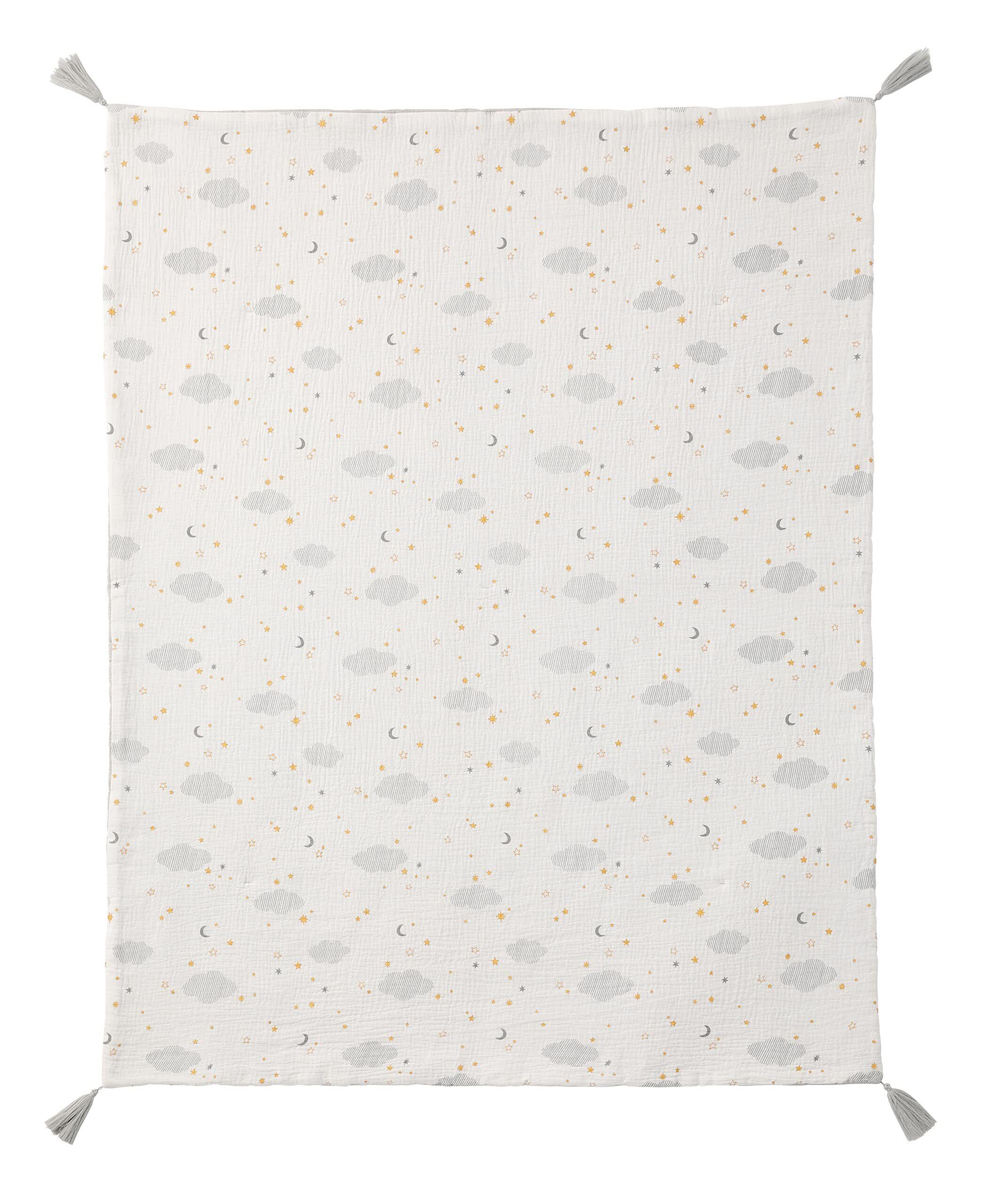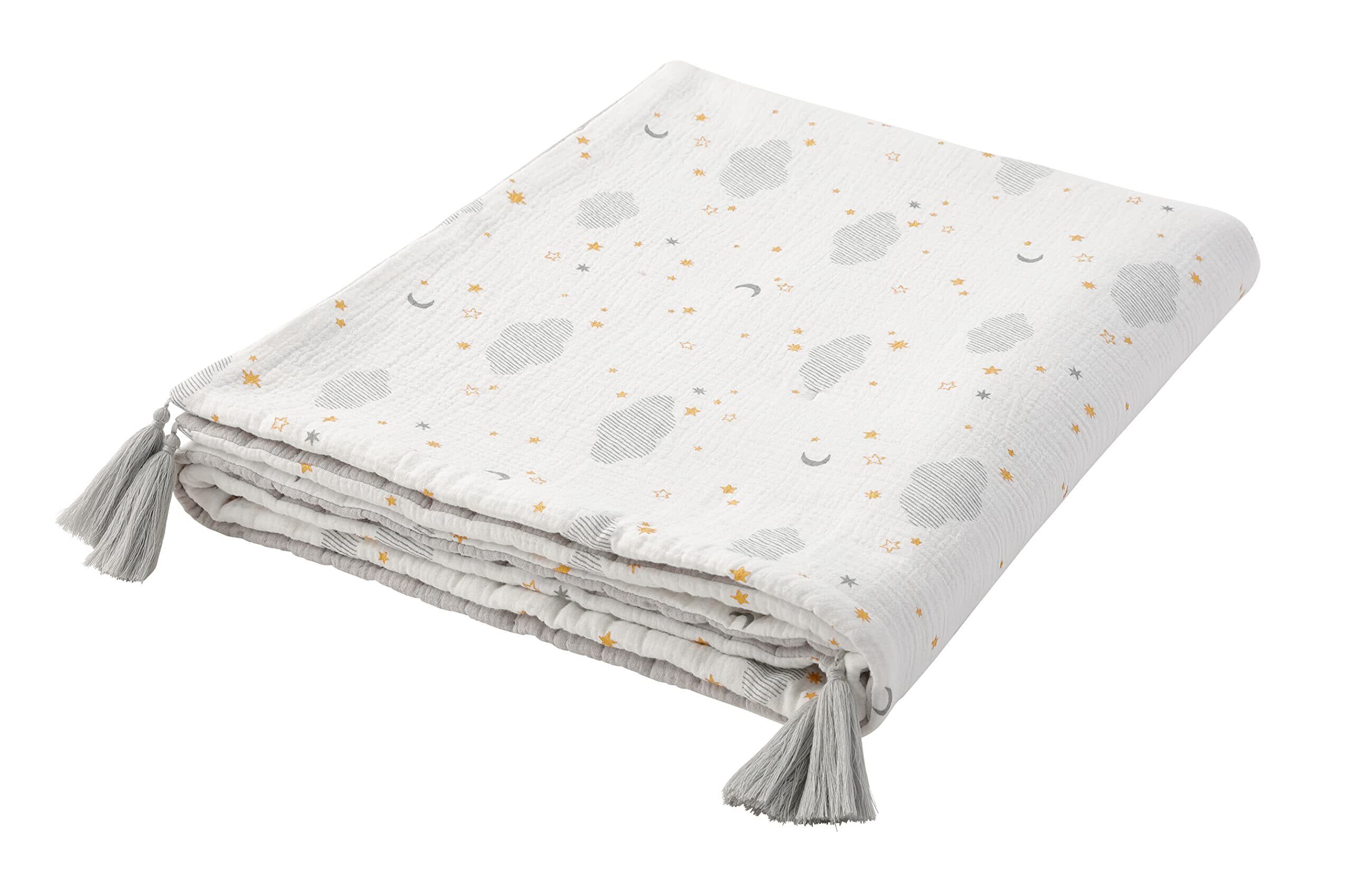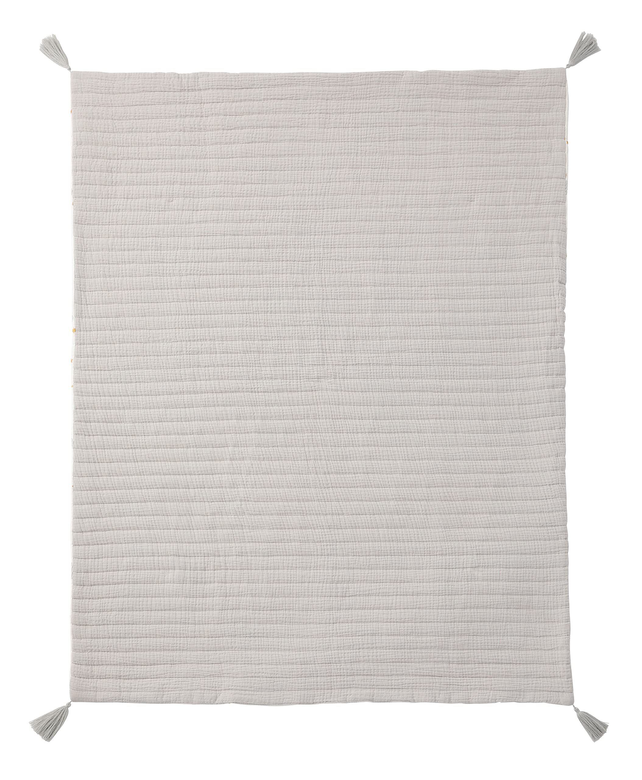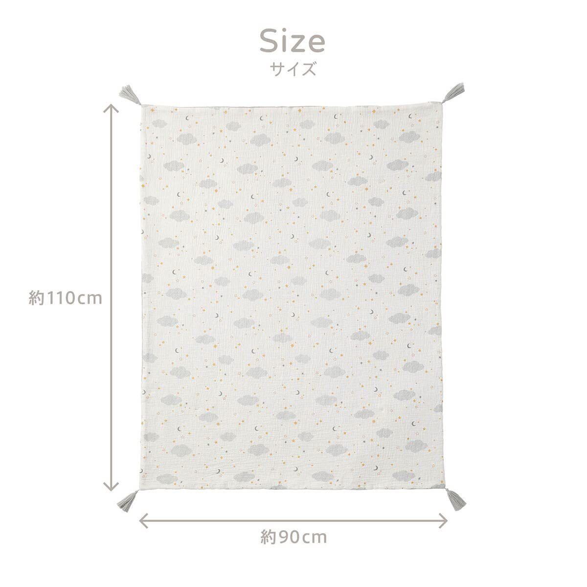 オールシーズン使いやすいタッセル付きのガーゼケット。 リバーシブル仕様で気分によって使い分けが可能です。約90×110cmのベビーベッドにも使いやすいサイズ感。 通気性・肌触りの良いダブルガーゼ。手洗い可能。別売りのお昼寝マットとセットでの使用もおすすめ。■手洗いできます。 ■非常に柔らかな繊維製品であるため、洗濯により若干の縮みや、製品からの綿埃などが発生する場合があります。干していただく際は、四方のシワを軽く伸ばし形を整えてください。