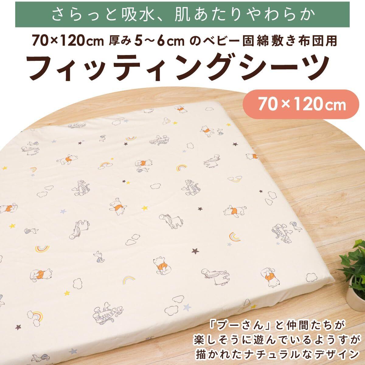 【2022最新】un doudou ベビー フィッティングシーツ 70×120cm Disney プー&フレンズ 吸水加工 ピーチスキン生地 NZ3225-T3