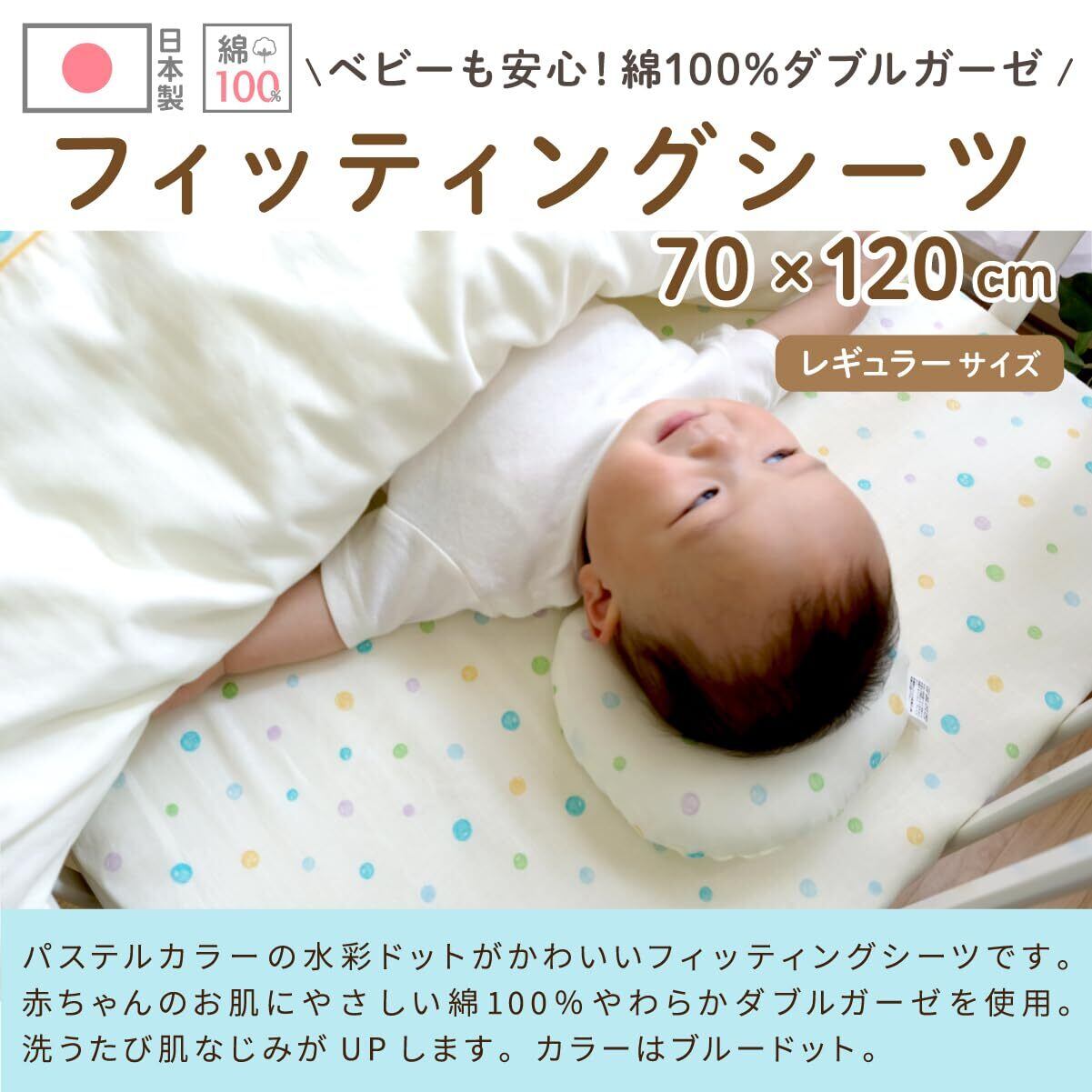 【特価商品】un doudou 日本製 ベビー フィッティングシーツ 水彩ドット 70×120cm ダブルガーゼ 綿100% サックス 1105-FIT-SA