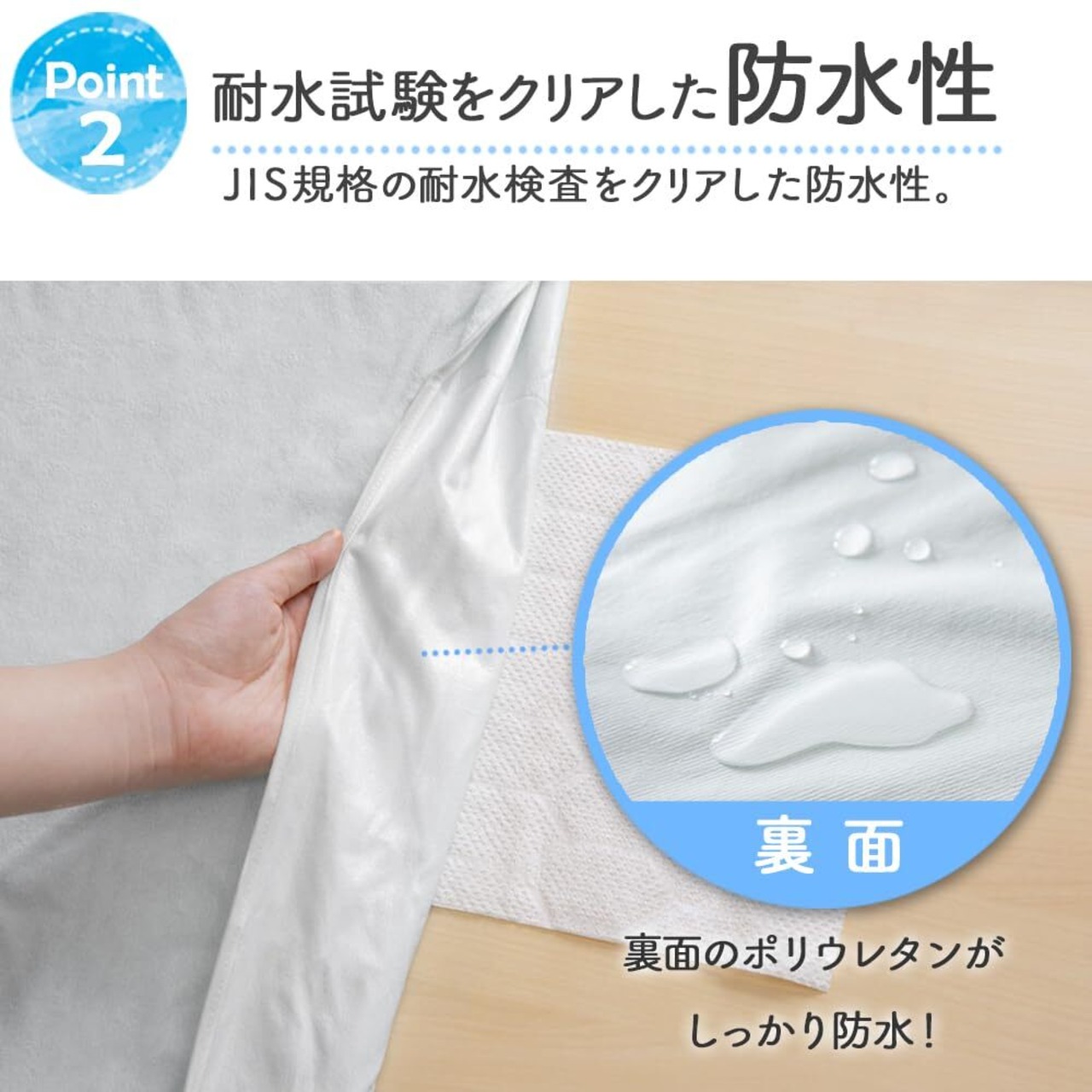 肌にあたる部分は綿100%の防水シーツです。
