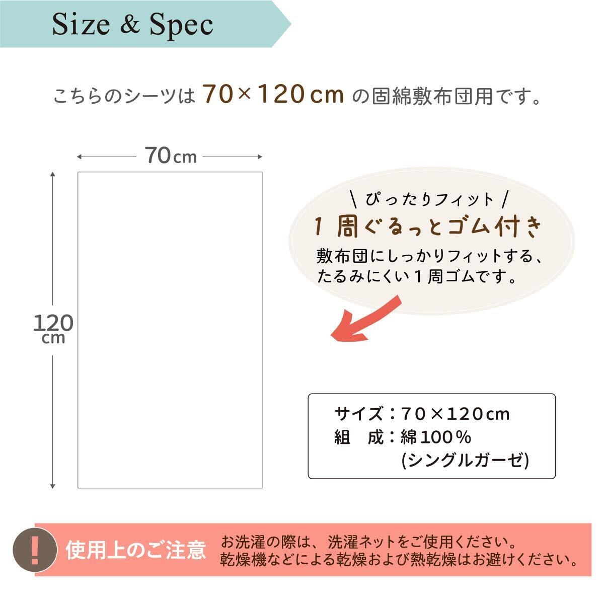 【周囲1周ゴム付き】ベビー敷布団(70×120cm)にぴったりとフィットします。すっぽりかぶせるタイプなので、着脱もラクラク