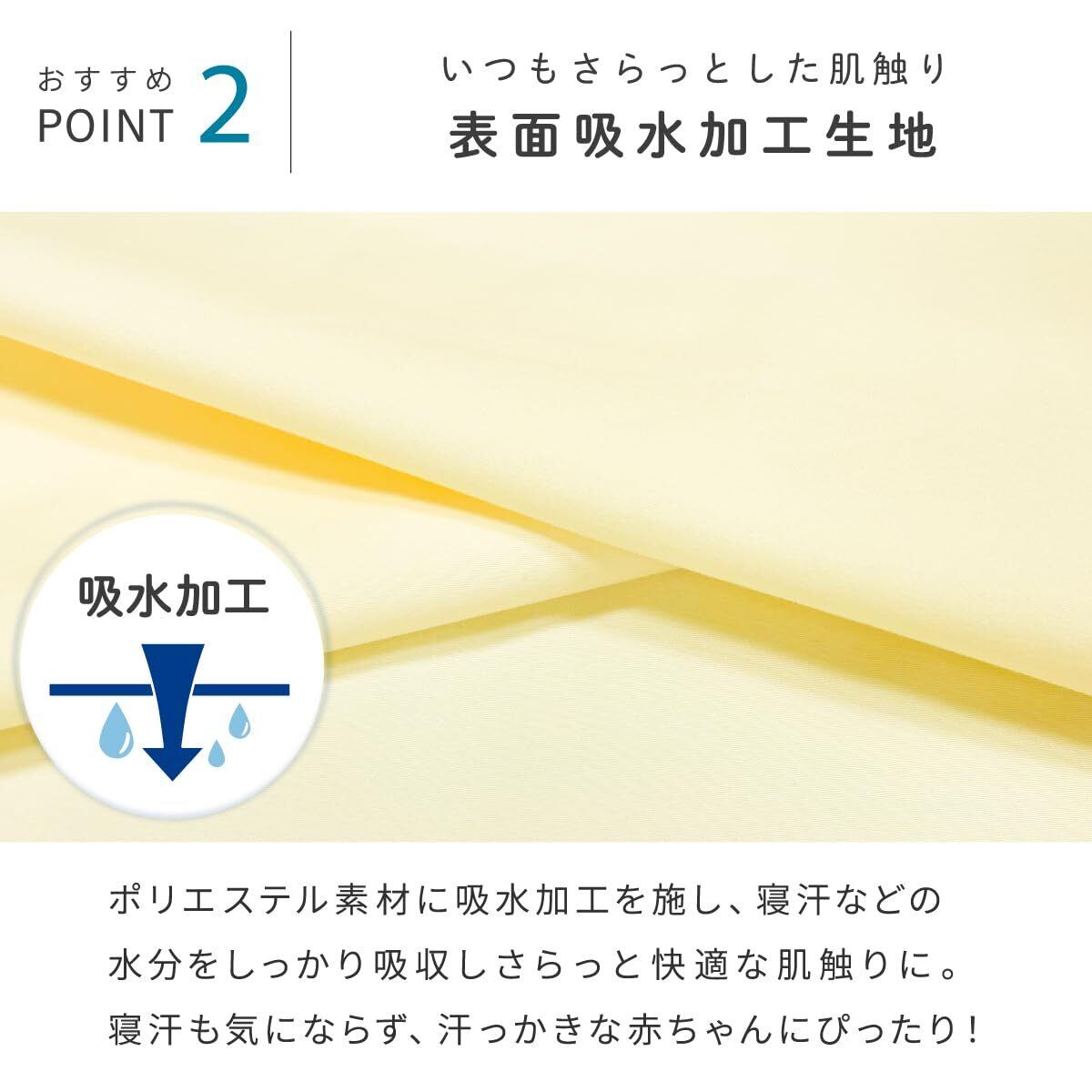 吸水加工を施したさらっとした素材のフィッティングシーツに防水機能が加わりました。