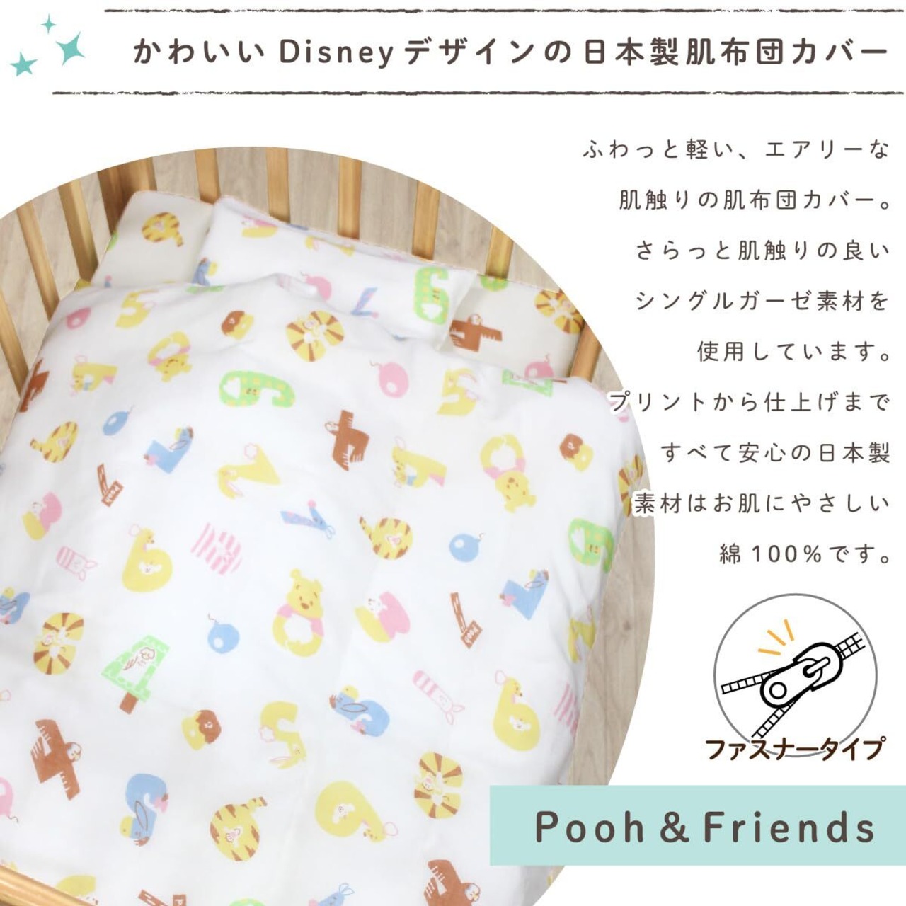 un doudou 日本製 ベビー 肌布団カバー 90×120cm ガーゼ素材 Disney プー&フレンズ 綿100% NZ6570-E