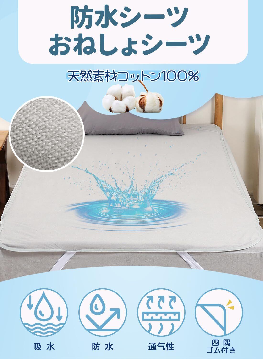 【数量限定】【SUNSEIKATU】防水シーツ シングル/セミダブル/ダブル/ファミリーサイズ 対応 敷きパッド マットレスカバー綿100%防ダニ おねしょシーツ 大人用 介護用 ベビー用 シートベッドカバー ベビーシーツ ベッドパッド 四隅強化ゴム付き(シングル100x200㎝ グレー 1枚)