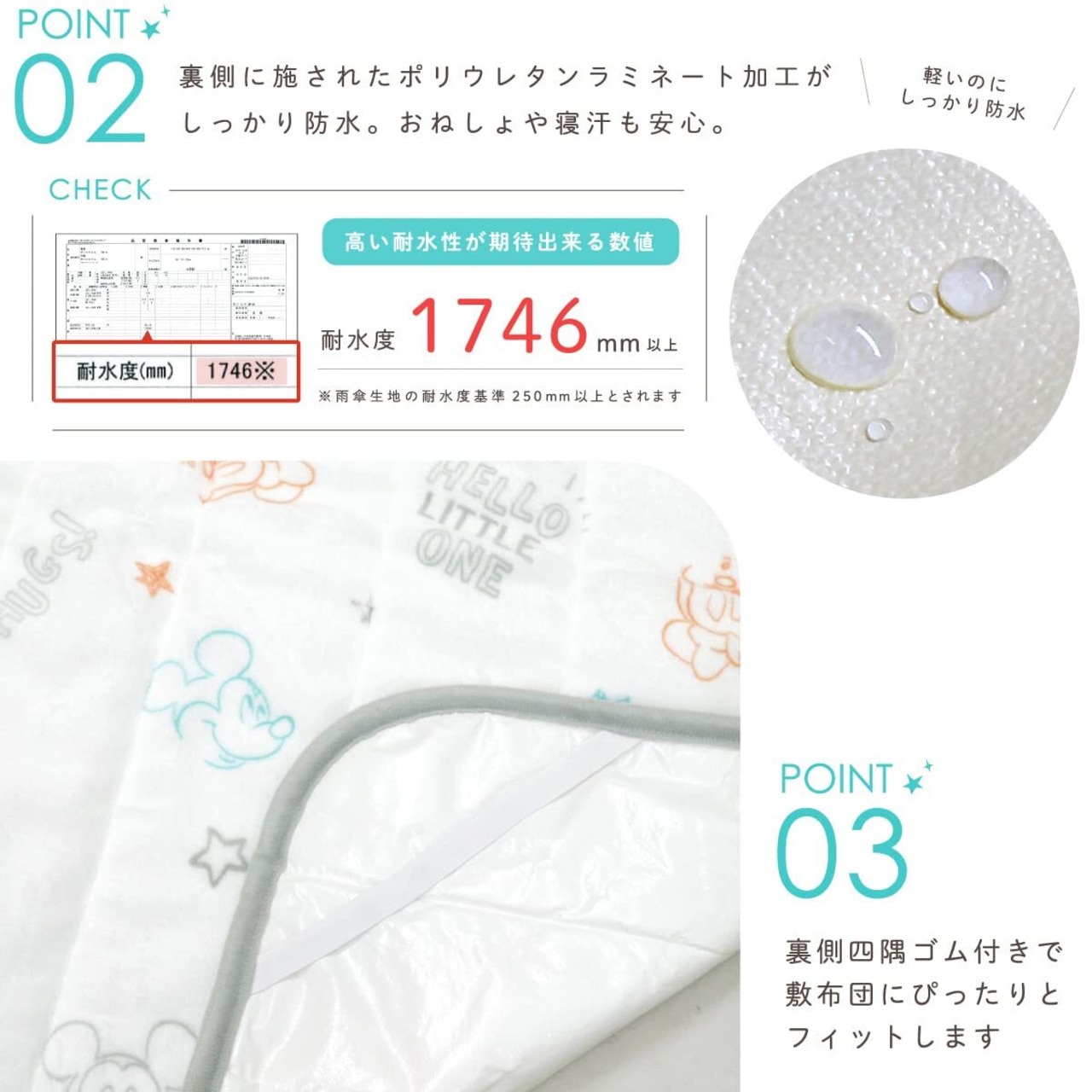 裏面は防水加工を施しているので、おねしょ対策や吐き戻し対策もばっちり!