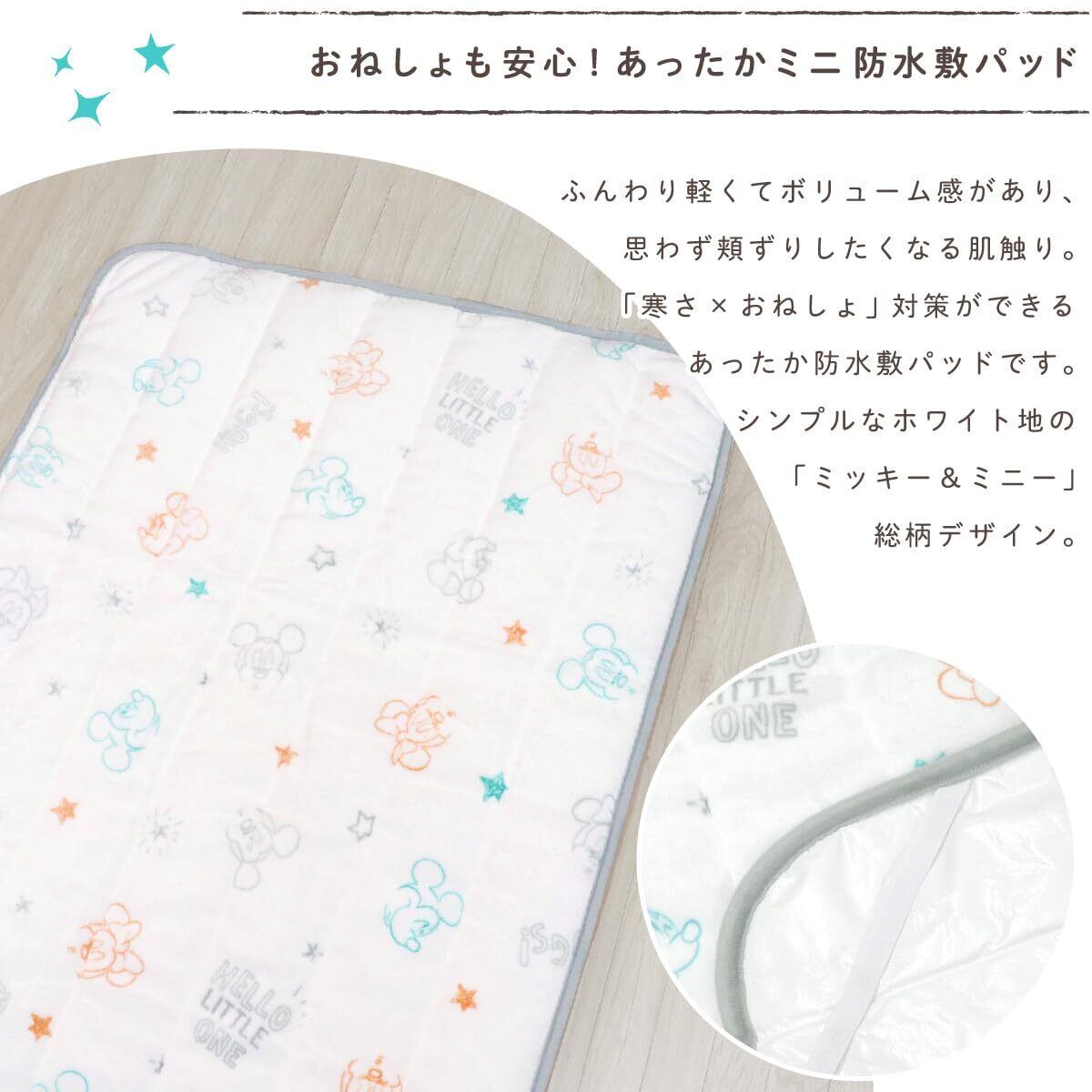 【数量限定】un doudou ベビー ミニサイズ あったか防水敷パッド 60×90cm フランネル Disney ミッキーマウス&ミニーマウス ふんわり肌触り 防水加工 四隅ゴム付き NZ3231-A