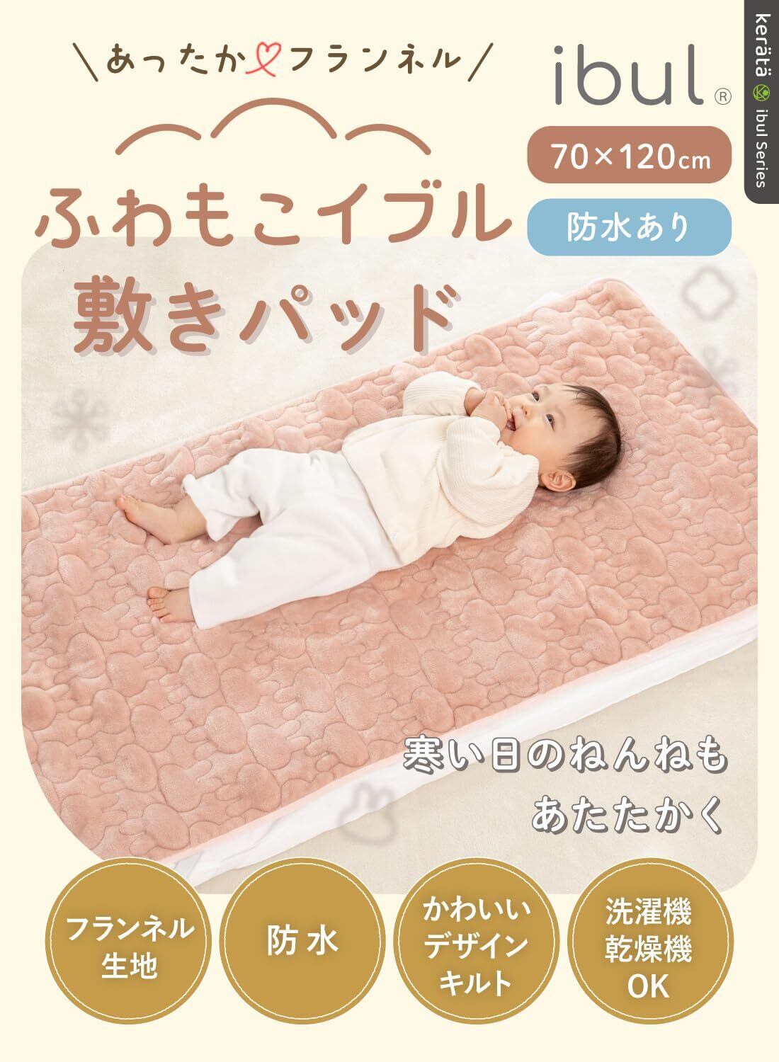 【特価商品】[ケラッタ] ふわもこイブル ベビー 【 防水 】 敷きパッド 乾燥機OK あったかフランネル 秋冬用 キルト 防水シーツ 赤ちゃん 四隅ゴム (70×120cm,うさぎピンク)