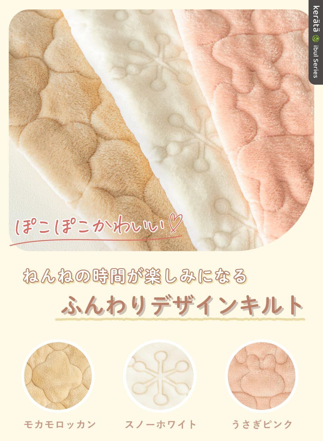 【かわいいキルトデザイン】ねんねの時間が楽しくなる、かわいいぽこぽこキルティング。韓国発祥のキルティング布団「イブル」からインスピレーションを得たケラッタオリジナルのキルトデザインとやさしい色合いを組み合わせました。裏地は汚れが目立ちにくいベージュカラーです。