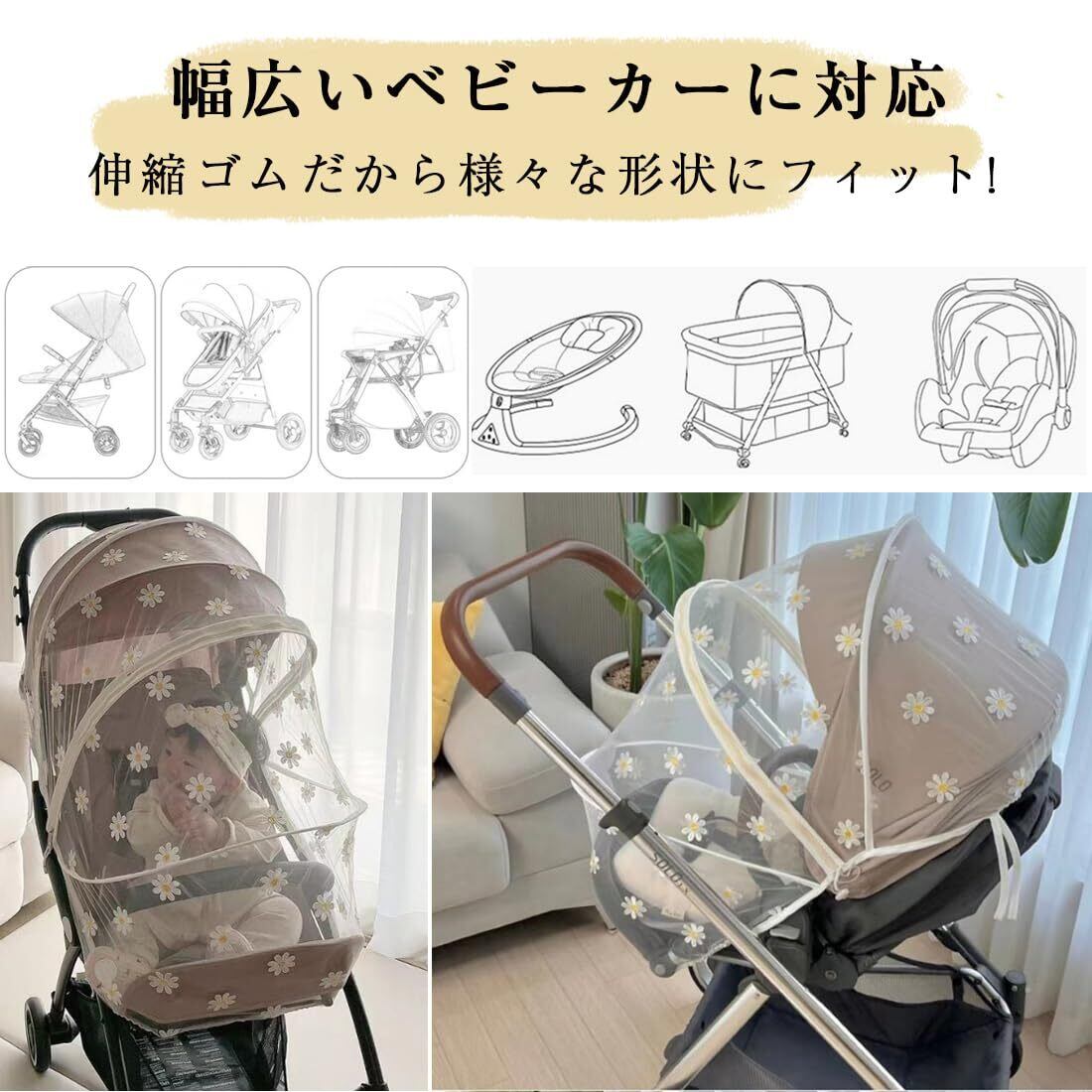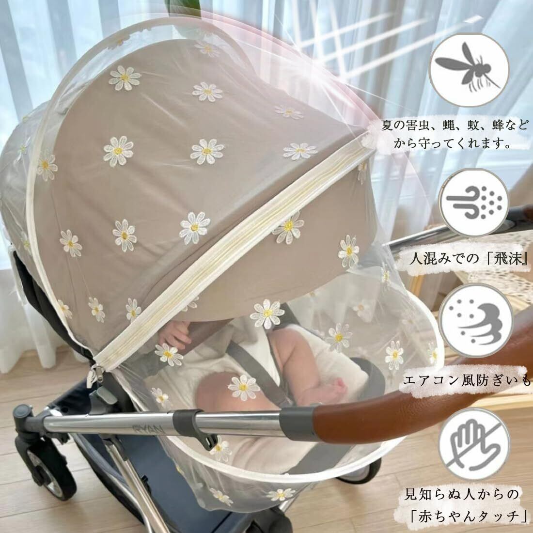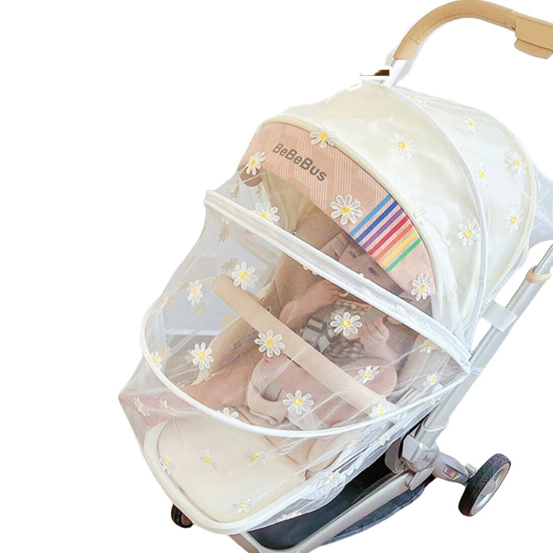 ベビーカーカバー 蚊帳 折りたたみ式 蚊よけ 日よけ 360 虫除けネット 風通しが良い 蚊除け ゴミ除け効果 お出かけ 蜂よけ 風除け お散歩 収納便利 取り付け簡単 (ホワイト, フリーサイズ)