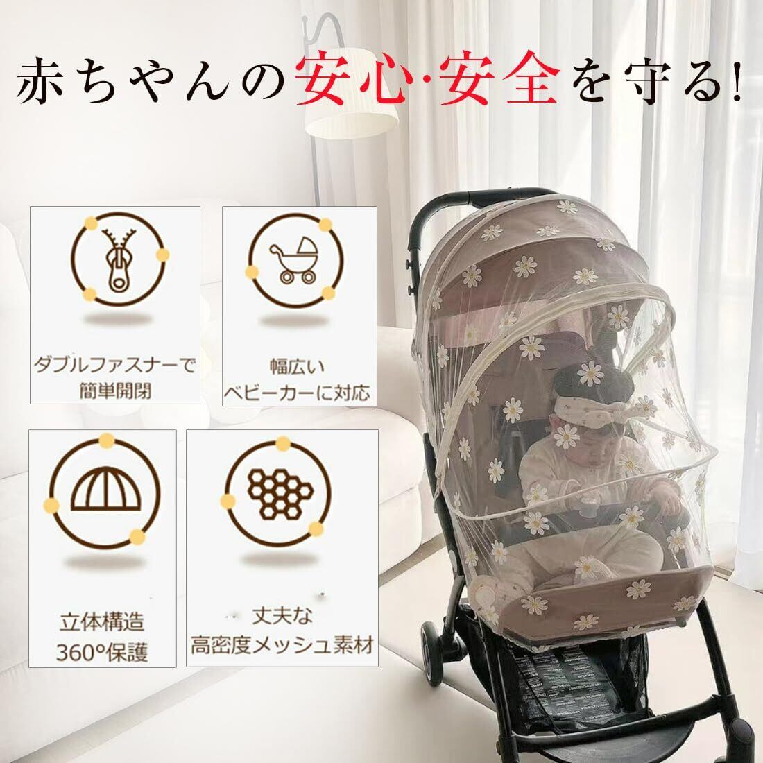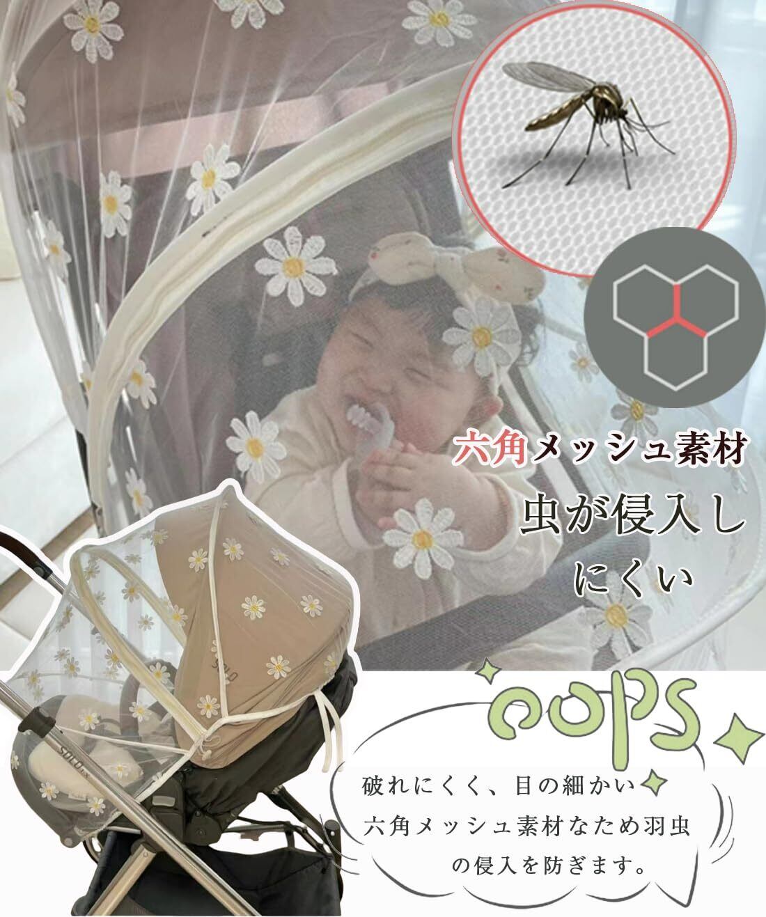 ●●蚊や害虫虫除け:ベビーカー蚊帳は赤ちゃんを蚊や害虫から守るためのとっておきのアイテムです。夏の害虫、蝿、蚊などから守ってくれます。風にも強く、日よけにもなります。風強い日の危険物からも赤ちゃんを守ります。