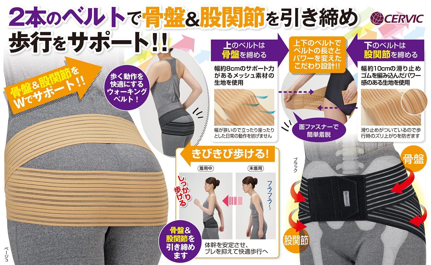 ・上下2本のベルトが、骨盤・股関節をギュッと引き締め、体幹をサポート!