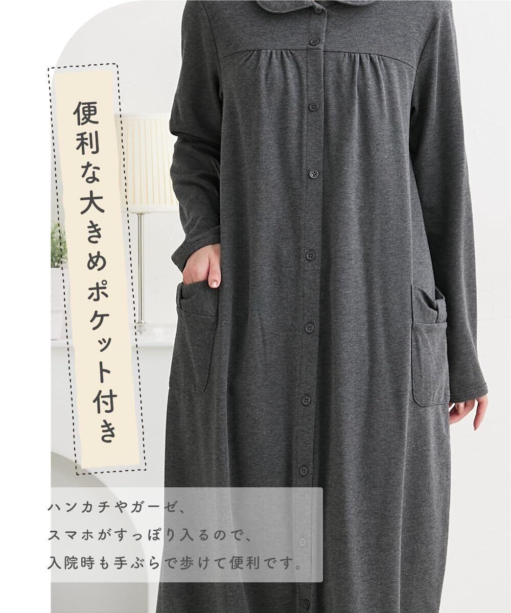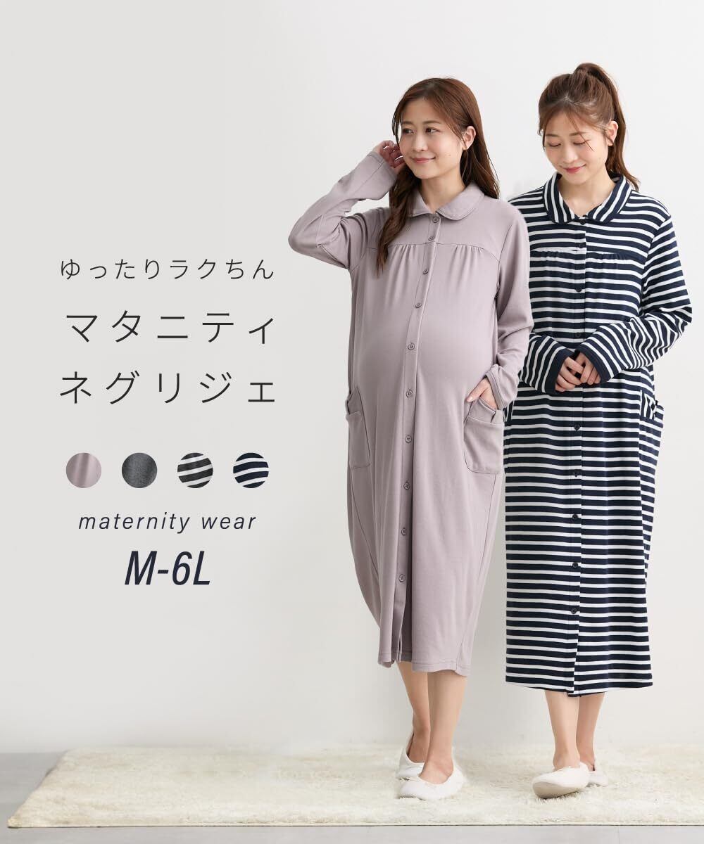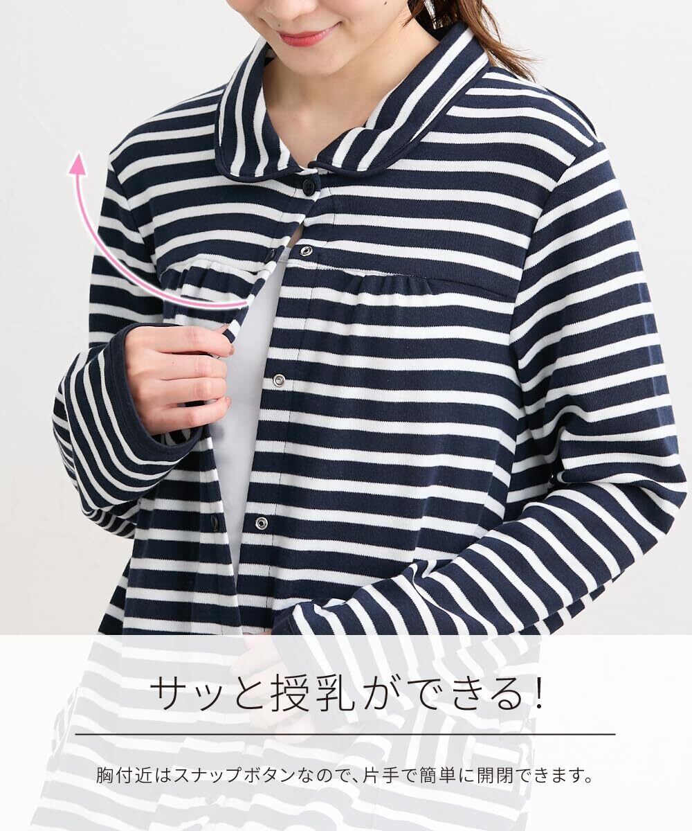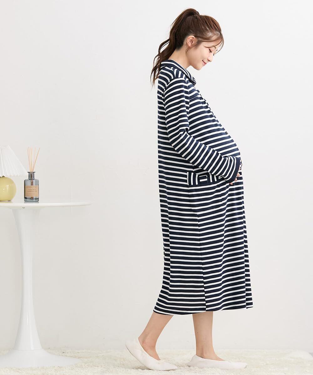[ニッセン] マタニティ パジャマ ルーム ワンピース ネグリジェ 前開き 長袖 授乳 綿混 春 秋