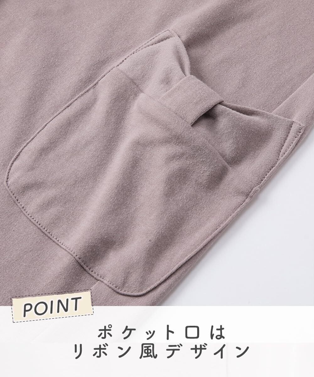 両脇ポケット付で、スマホやティッシュなどの小物が入れられるので便利。身生地はカットソー素材でやわらかく着心地ラクちん