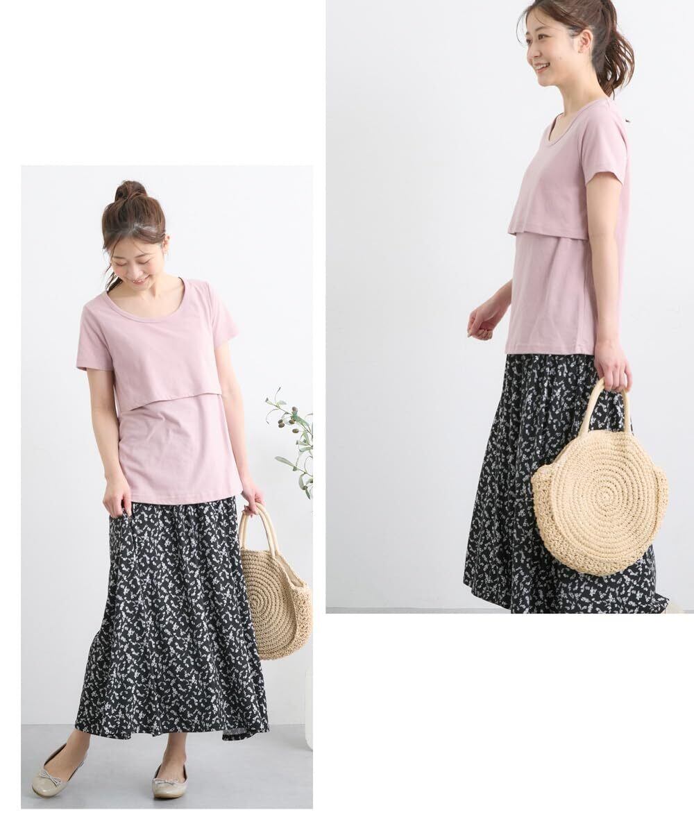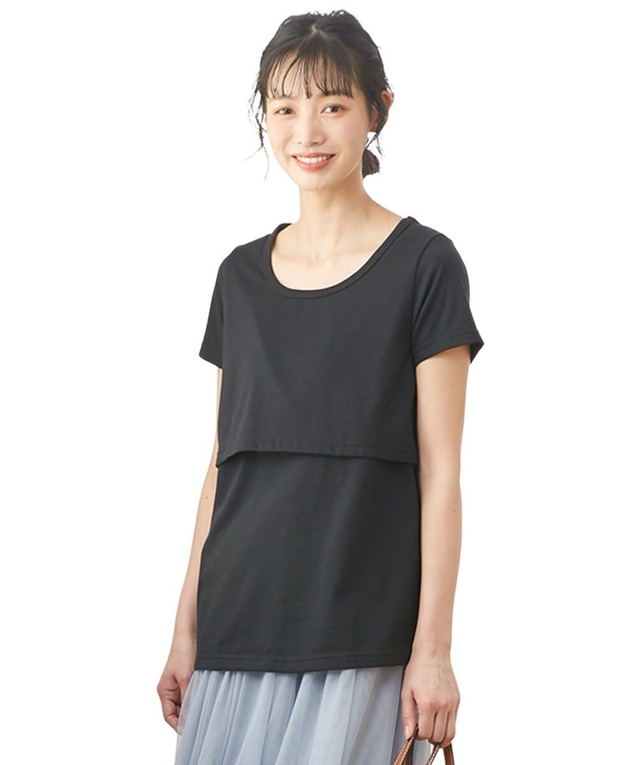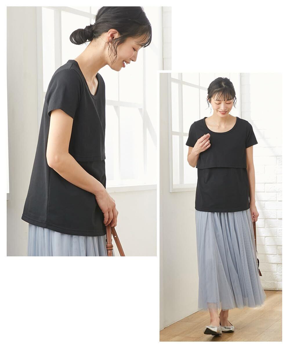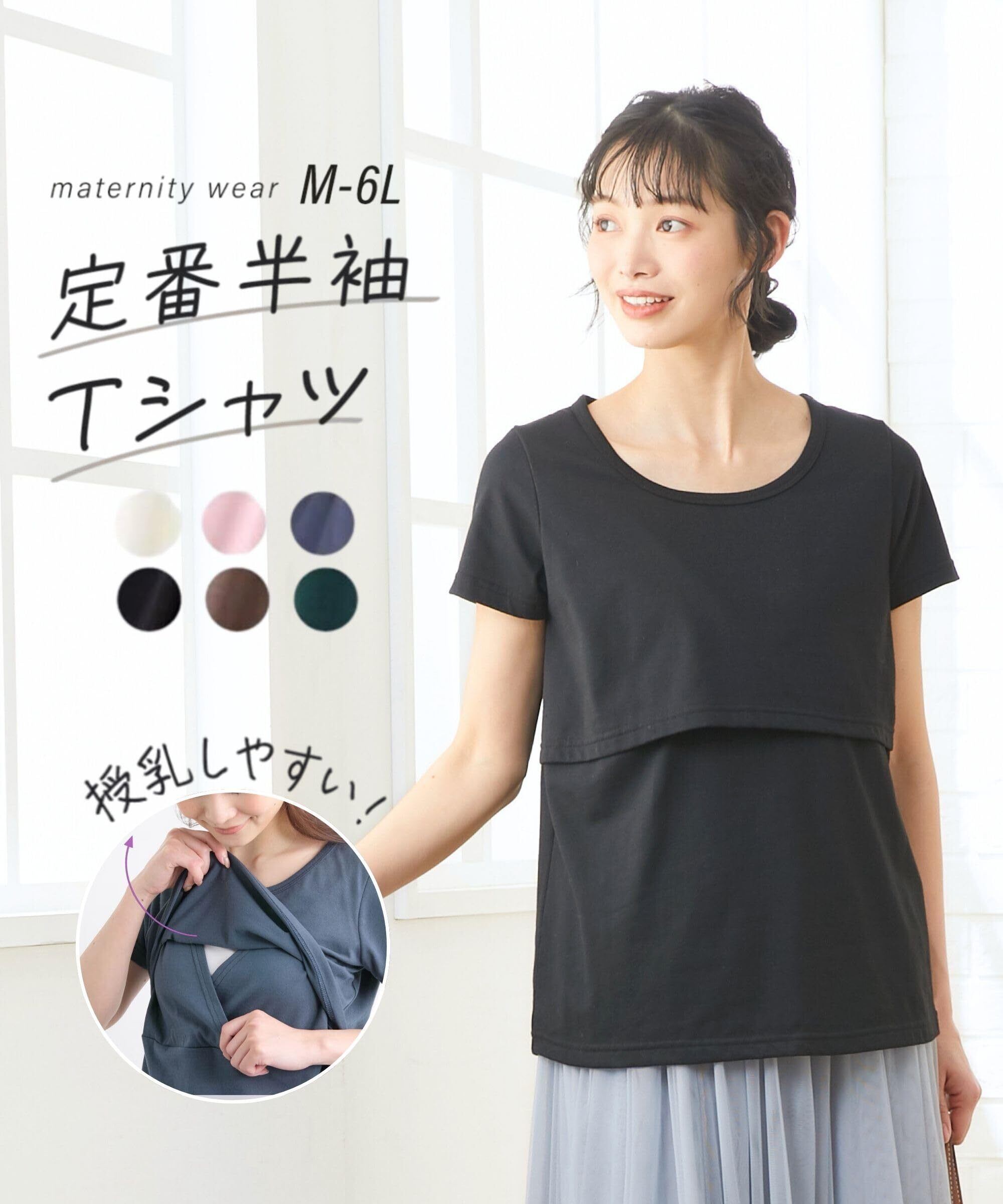 [ニッセン] マタニティ トップス Tシャツ 半袖 産前 産後 授乳服 シンプル 無地 夏