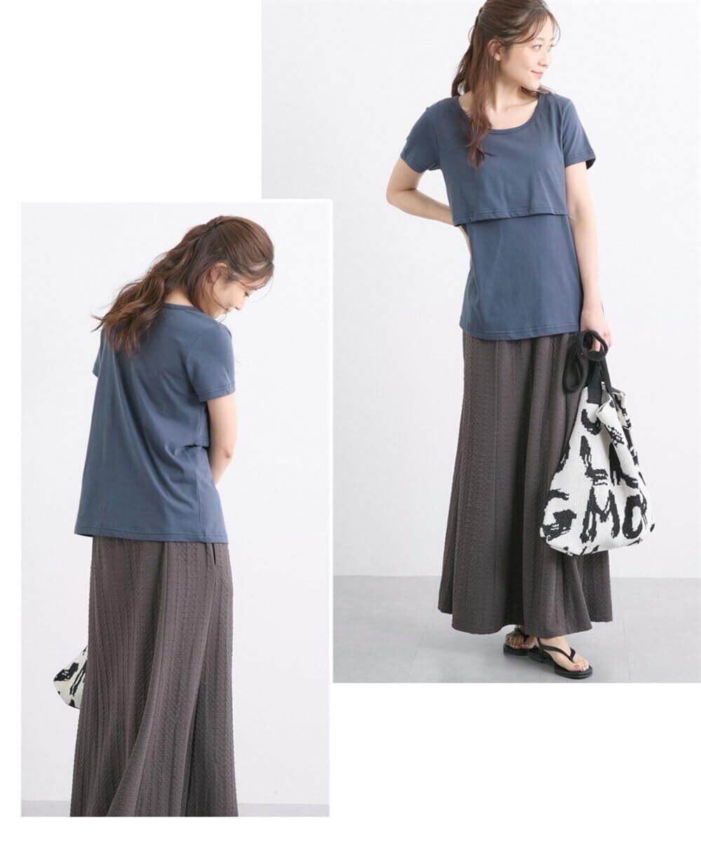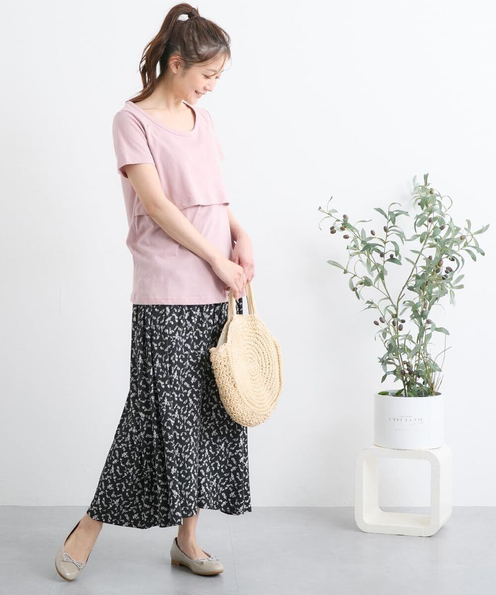 先輩ママに好評の授乳しやすいTシャツで、産前産後と長く使えます。
