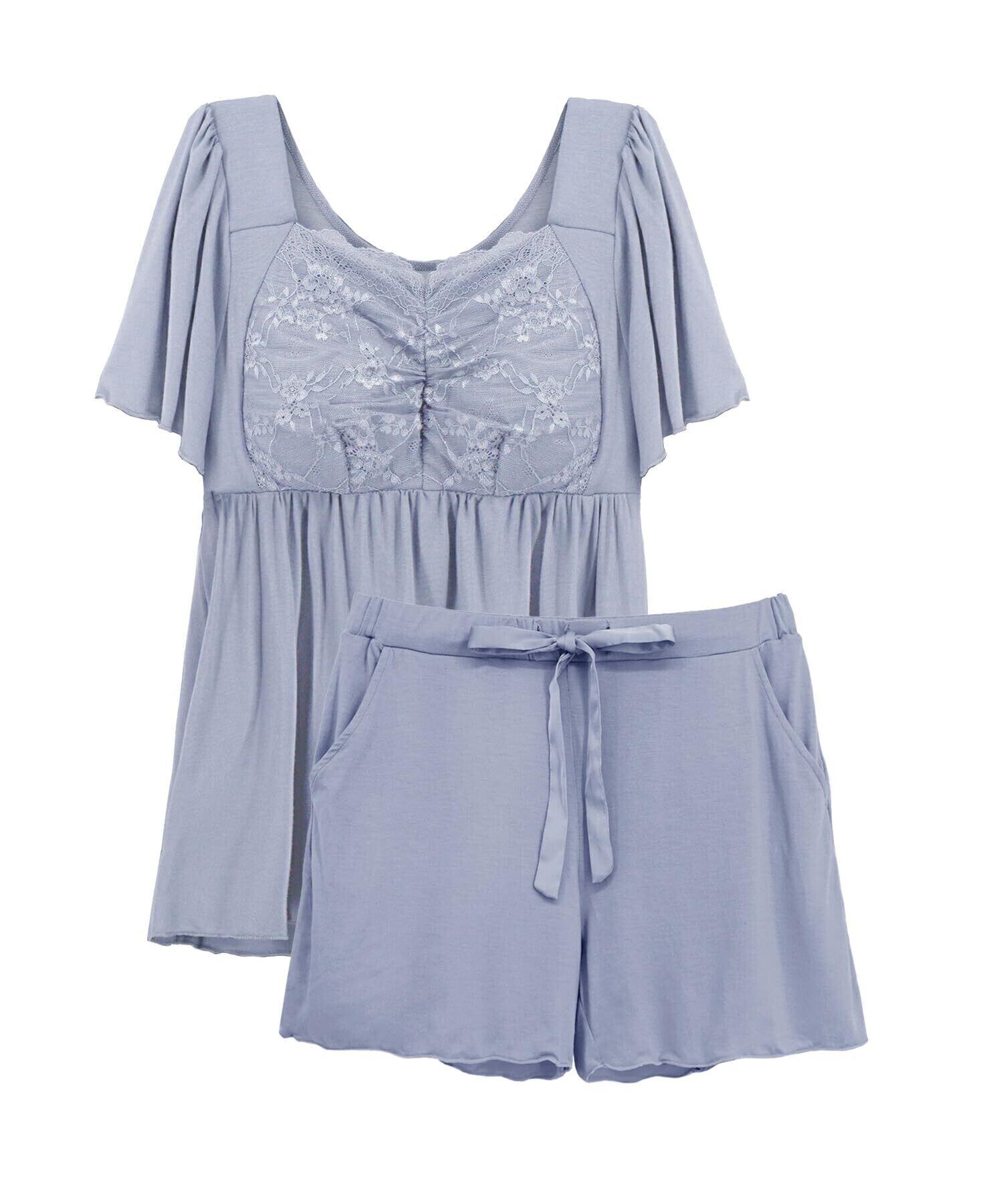 [ツーハッチ] ナイトブラキャミ半袖フレア&ショートパンツ 上下セット ノンワイヤー ルームウェア 授乳 産前産後 マタニティ パジャマ 部屋着 8820atg