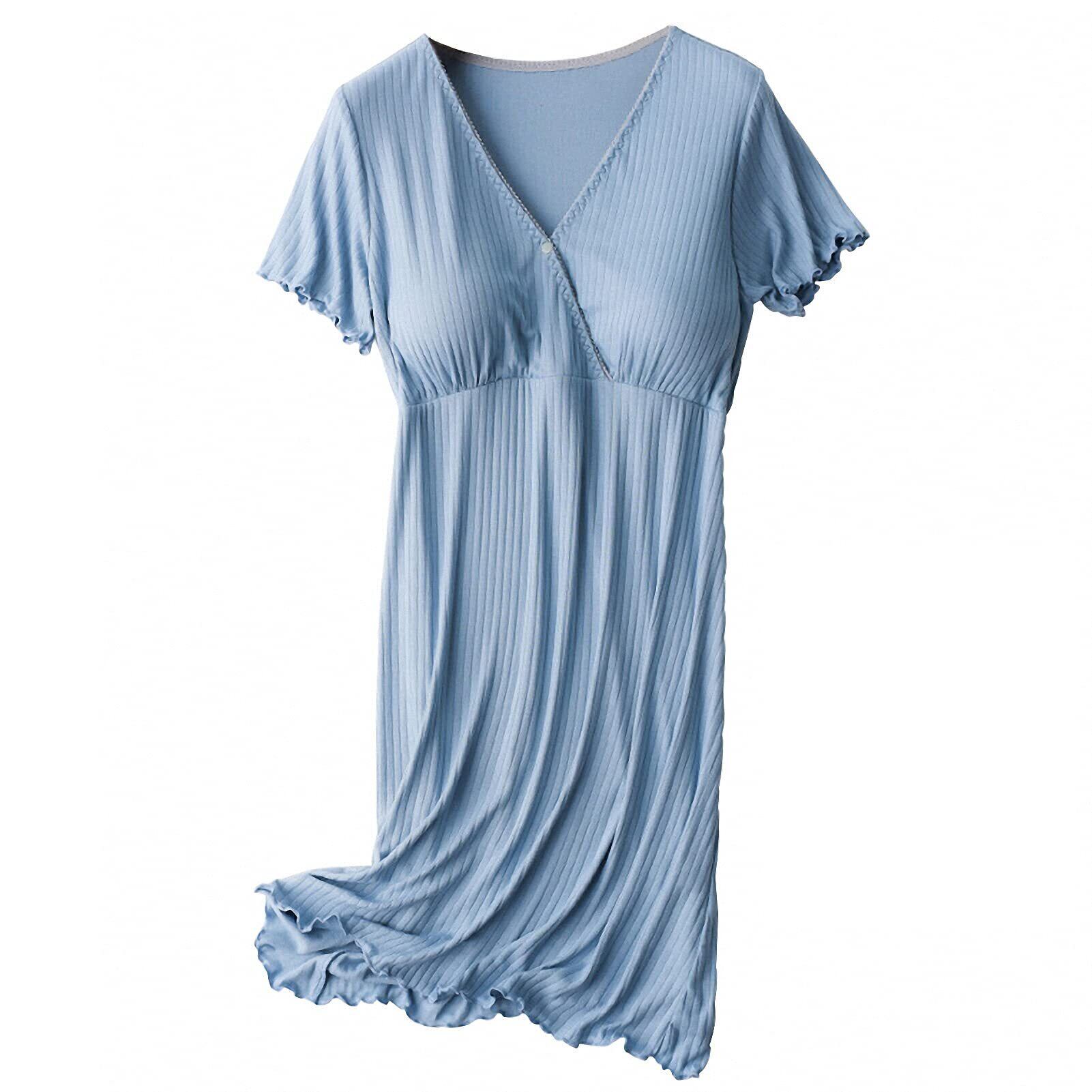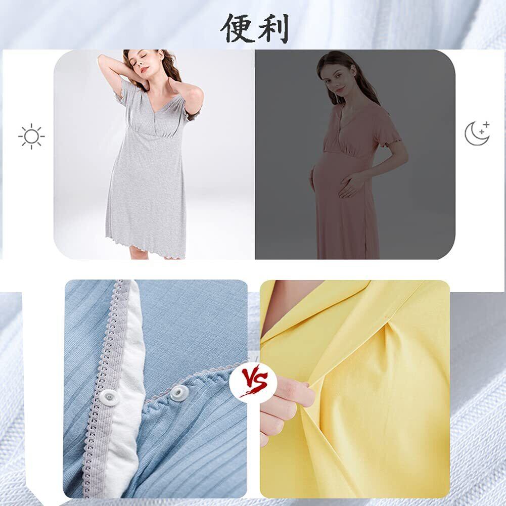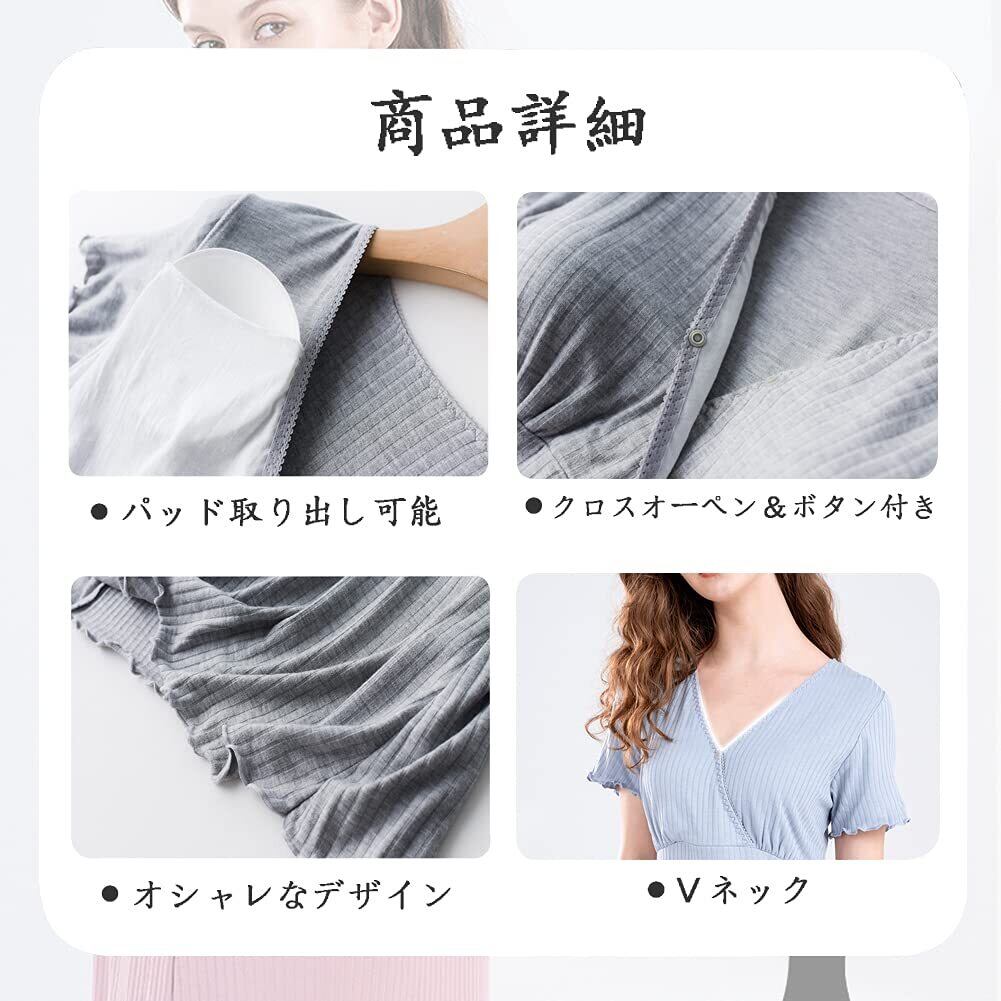 [Joyancejt] マタニティパジャマ ワンピース 半袖 夏 前開き クロスオーペン カップ付き マタニティルームウェア レディース パジャマ オシャレ