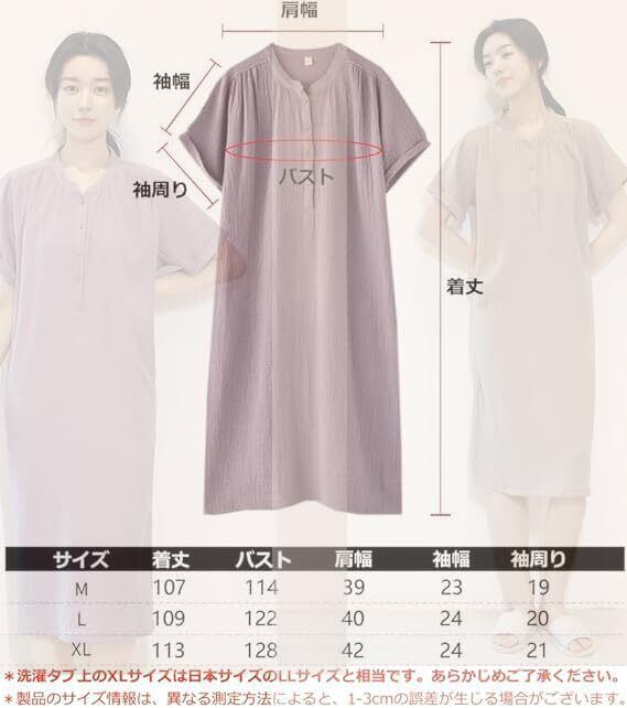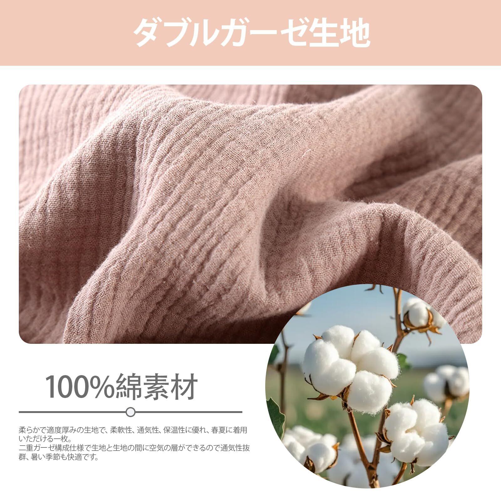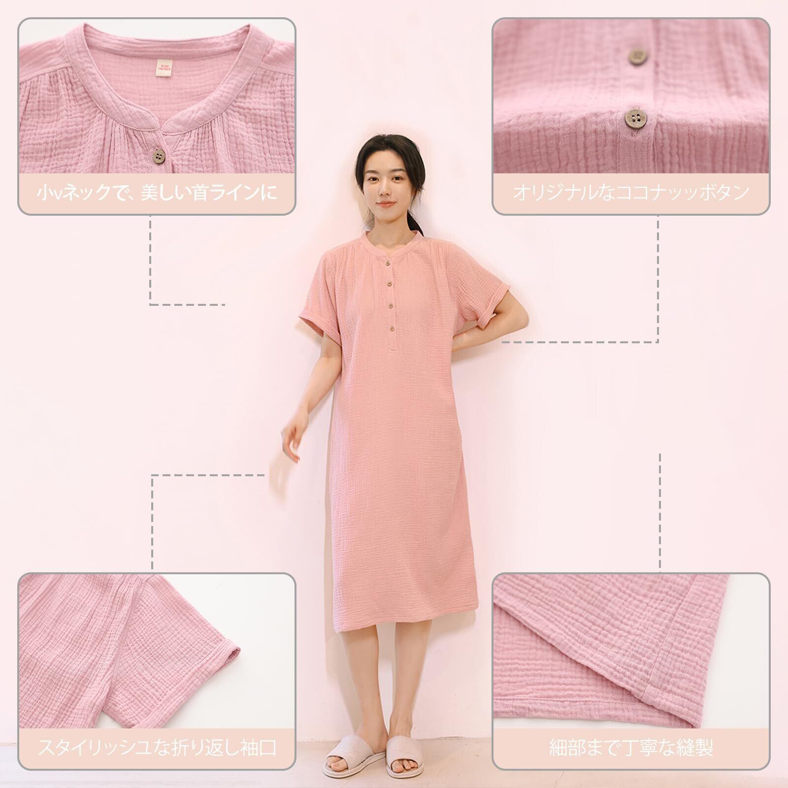 【100%綿素材】:綿100%の柔らかさと通気性が特徴のルームウェア ワンピース、ダブルガーゼ生地、ふんわり感。優れた通気性で夏は涼しく、冬は空気を含んであたたかいガーゼ素材で1年中使えます。季節を問わず感触を楽しむことができるレディース用パジャマです