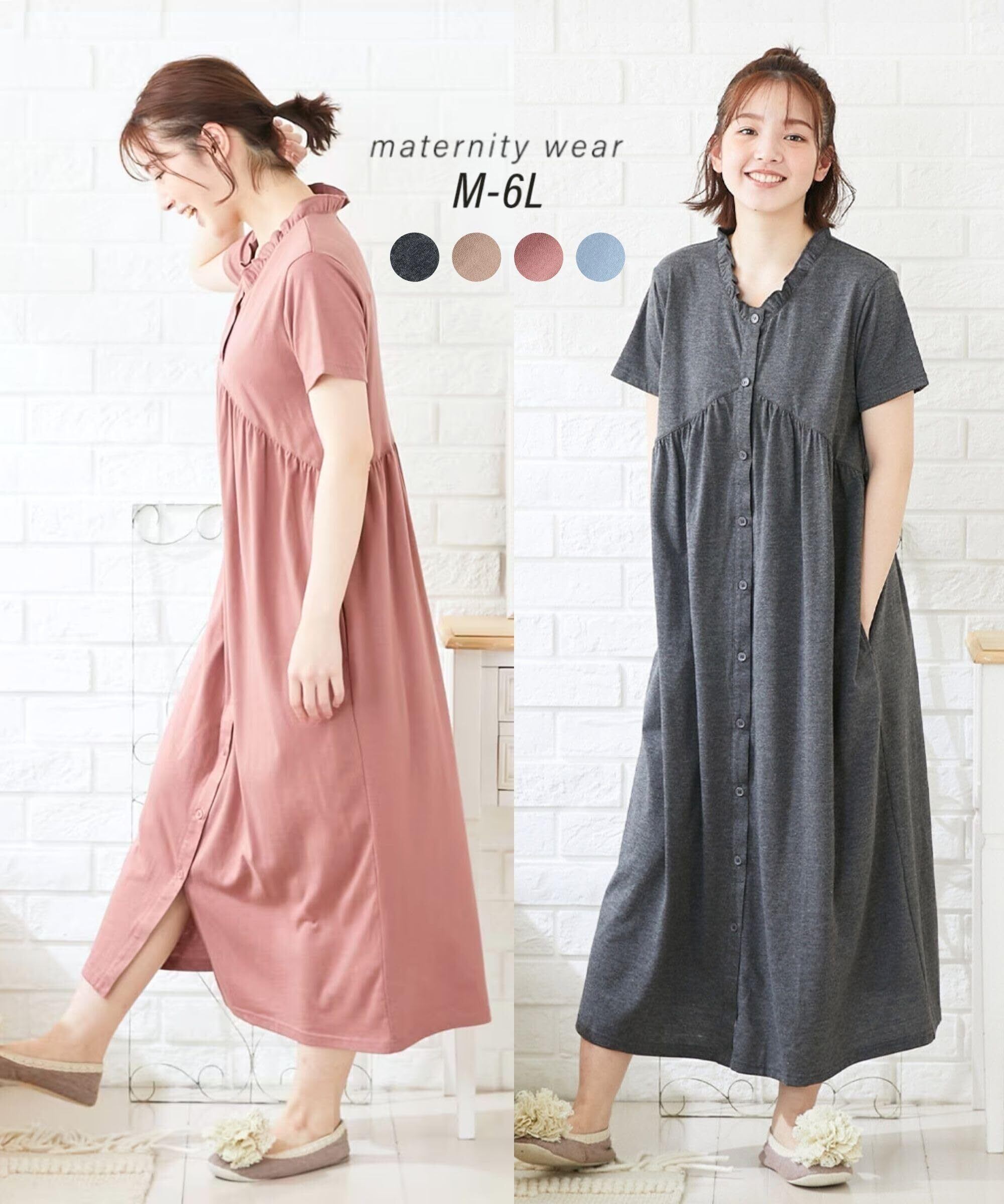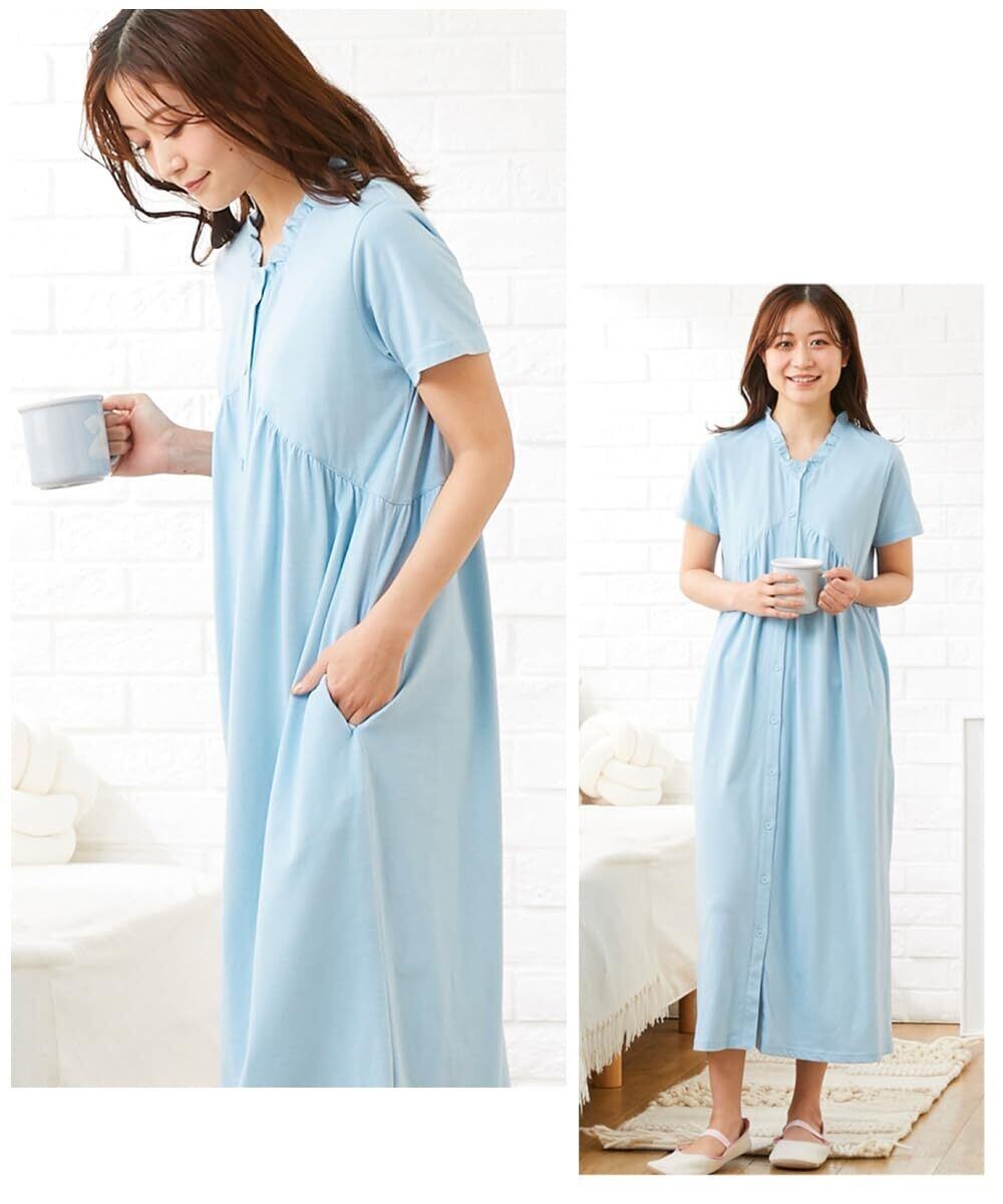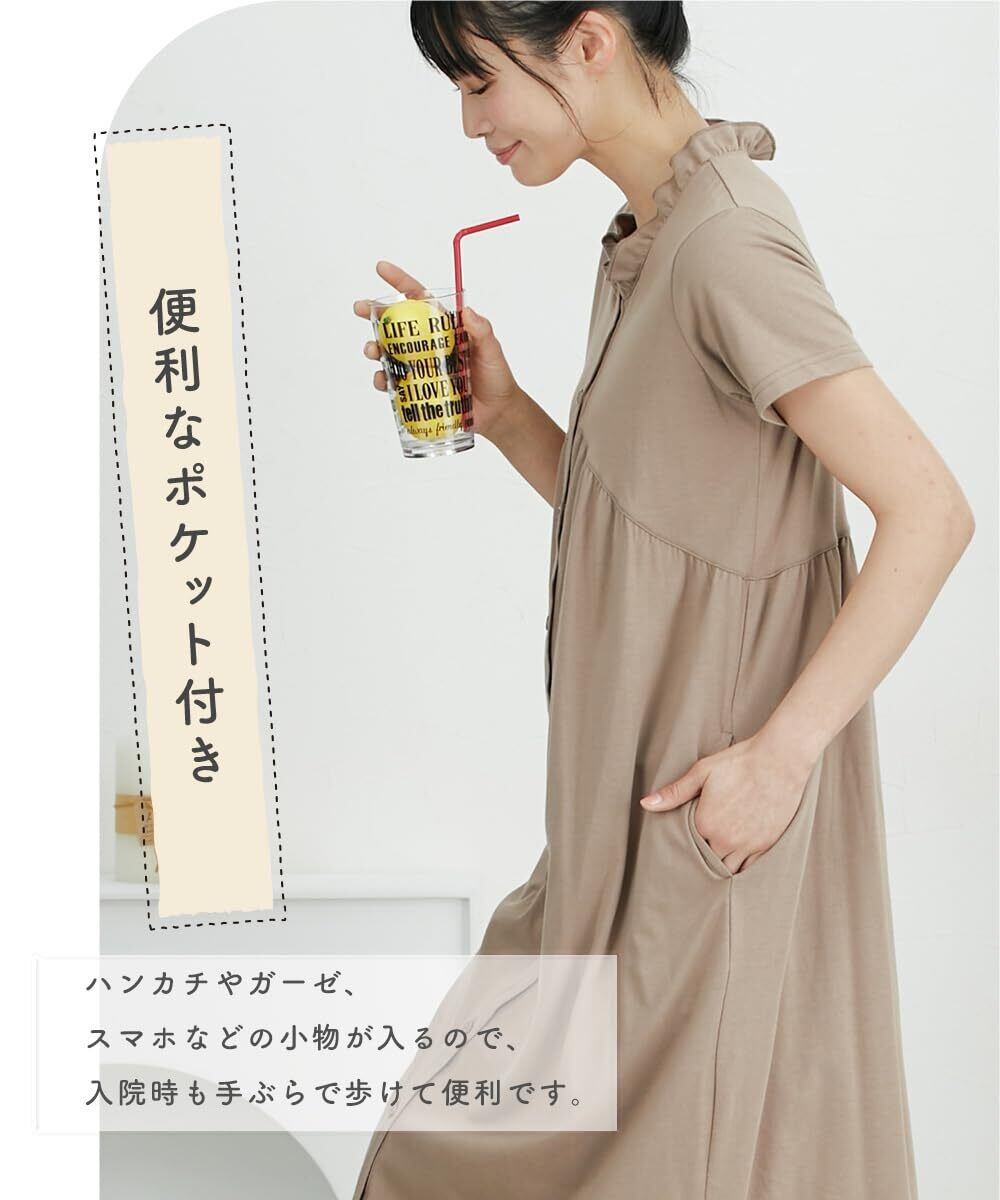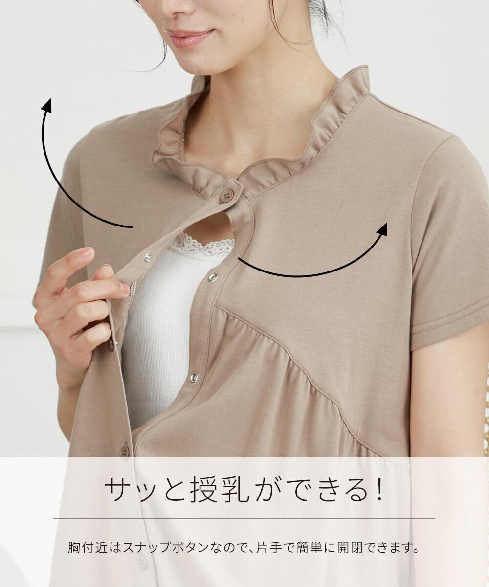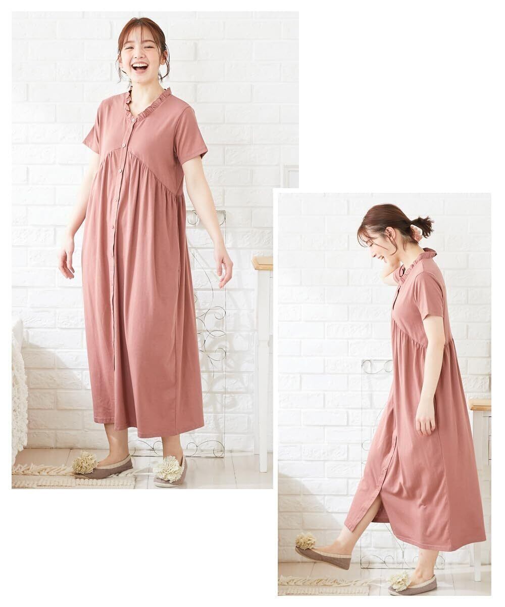 [ニッセン] マタニティルームウェア・パジャマ レディース 【マタニティウエア・授乳服】 ギャザー切替半袖ワンピースパジャマ(産前・産後)